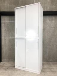 【2セット限定】【開閉時に場所を取らない引き違い戸の書庫セット!】■ウチダ製 HSシリーズ 引き違い+引き違い ハイキャビネット 2枚引き戸 ■ホワイト ■シリンダー錠 オフィスバスターズ 梅田本店