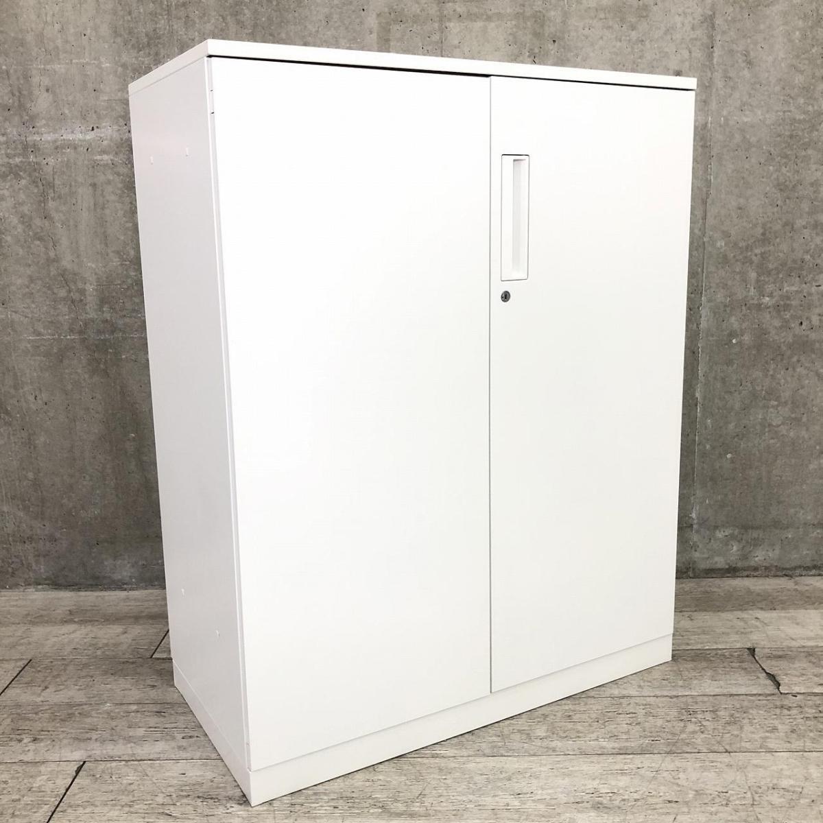 【収納物がひとめで分かる両開き戸タイプ!】■コクヨ(KOKUYO)製 エディア(EDIA)シリーズ 両開き書庫 ローキャビネット H1130㎜ ■天板・ベース付 ■ホワイト ■シリンダー錠