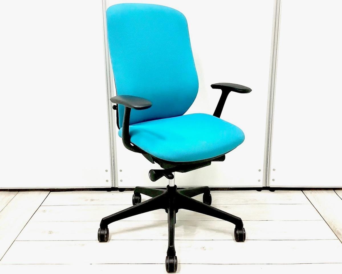 【前傾チルト機能付きの人気モノ!高機能オフィスチェア!】/オススメ(おすすめ) /人気商品【弊社使用欄:A01030020】■肘付き ハイバック クッションタイプ ■固定肘 ■ブルーグリーン×ブラックシェル/オカムラ(okamura)製 シルフィ(Sylphy)- 池袋店