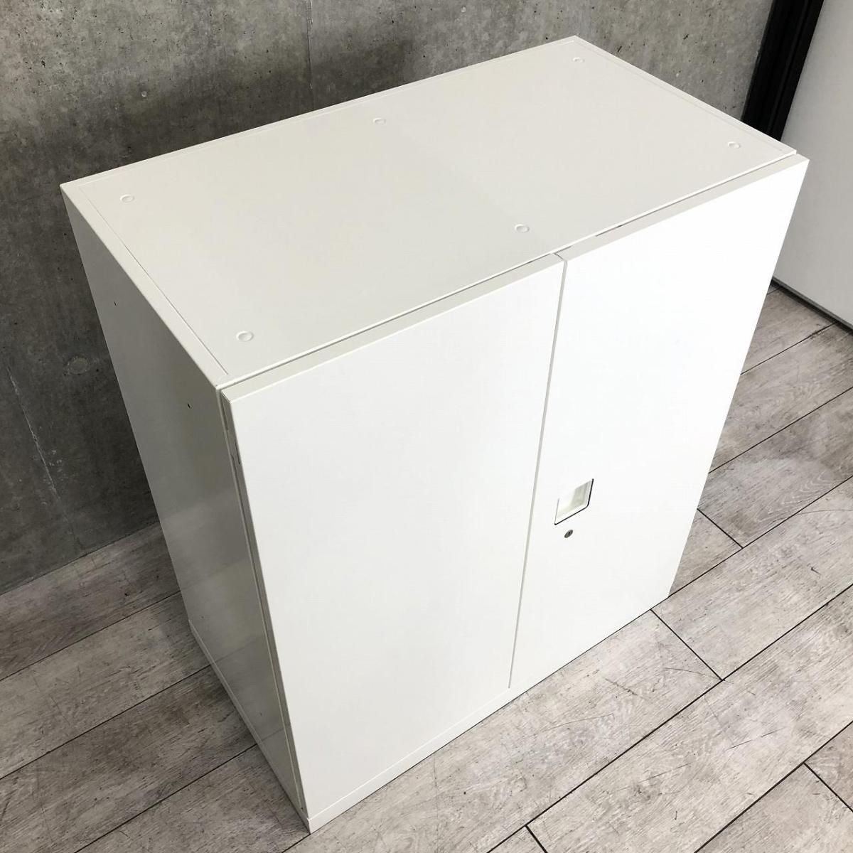 定番サイズ オカムラ/レクトラインシリーズ カラー:ネオホワイト 両開き書庫 鍵付き シリンダー錠 天板無し