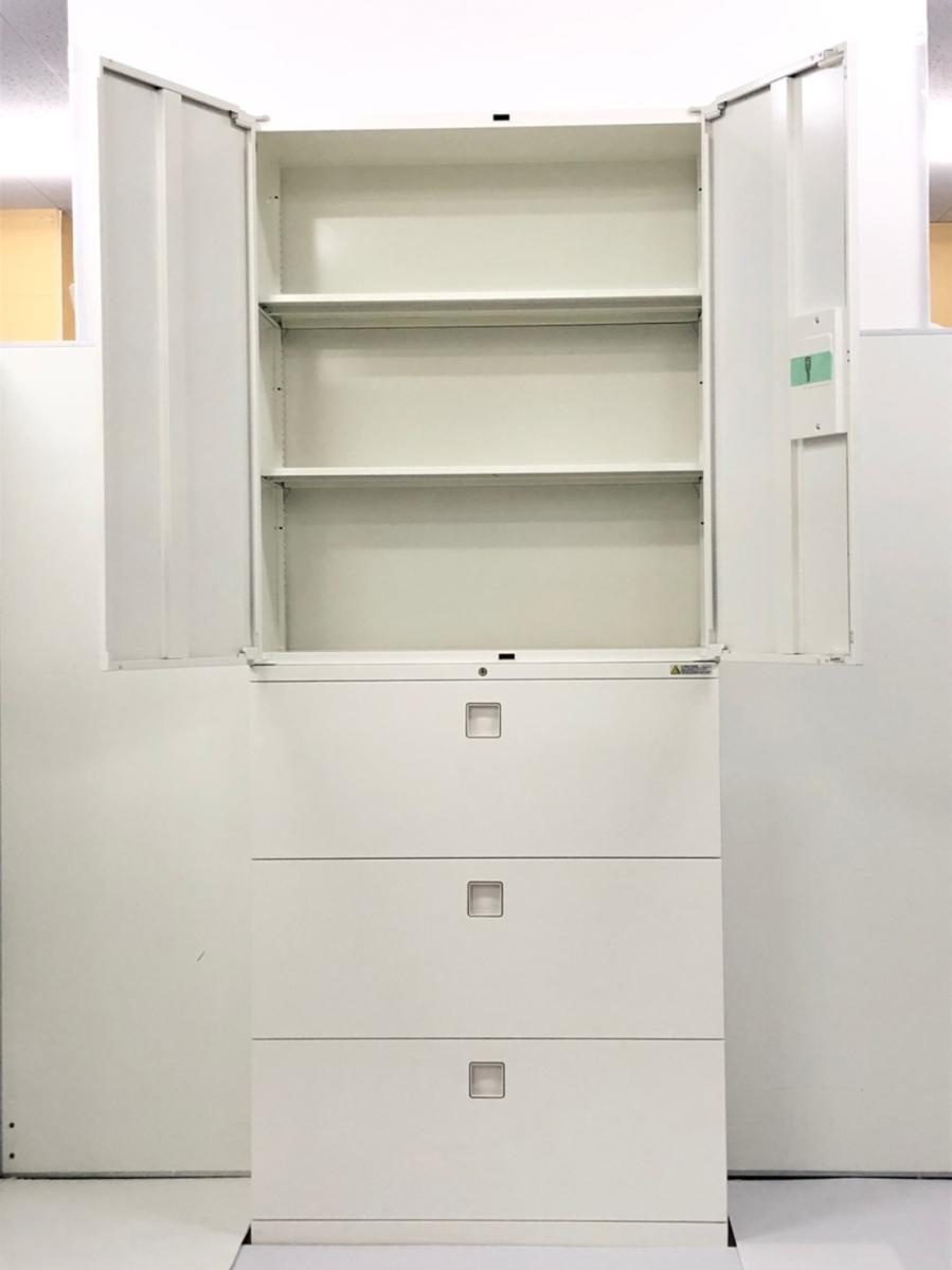 【レア!】高さ2000mmの観音開きと3段ラテラルの書庫セット!2150mmでは入らないオフィスに最適!【在庫入替セール品!】 ■オカムラ/レクトライン/ネオホワイト