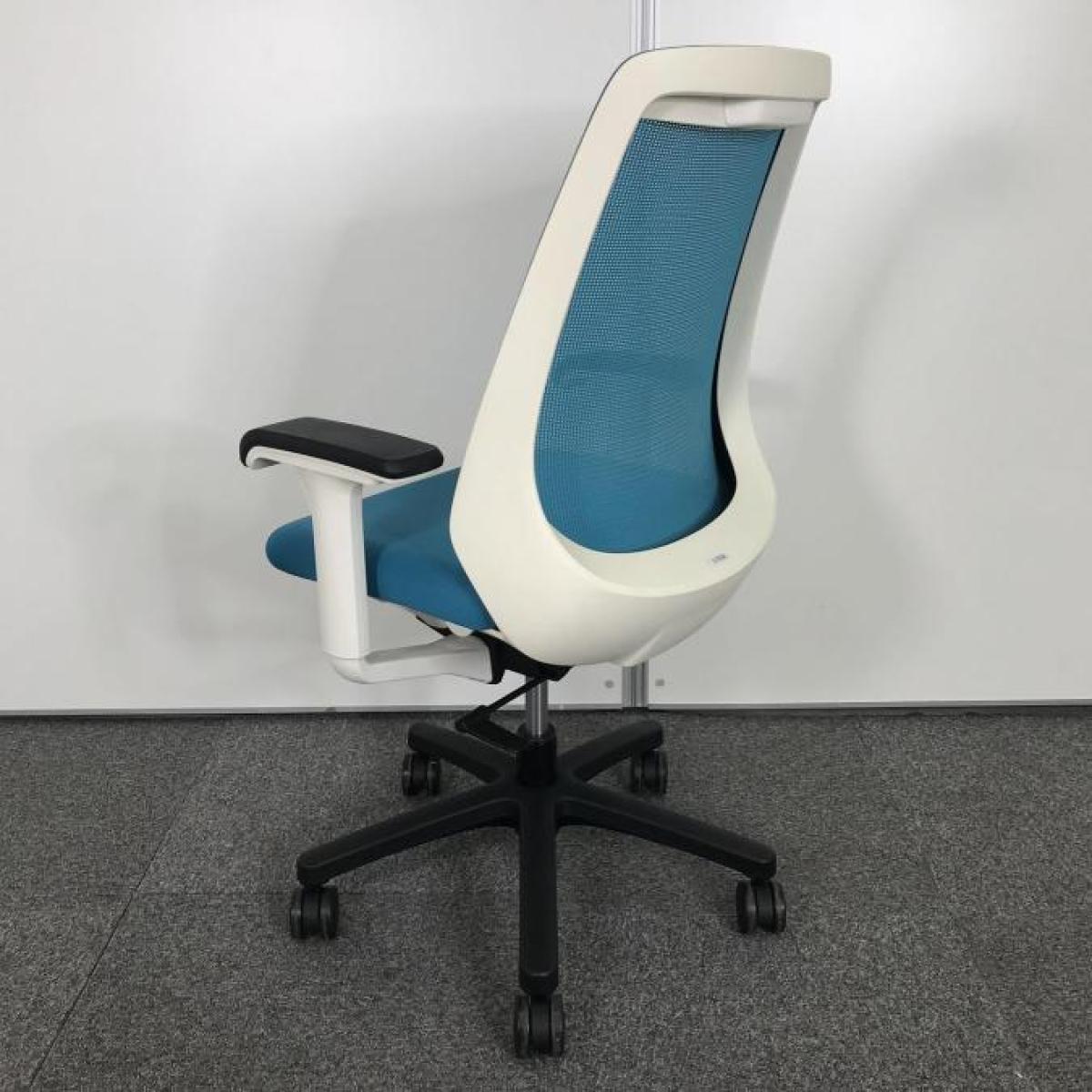 【在庫セール品・1脚限定】【T11】■イトーキ(ITOKI)製 ノナ(nona)チェア 肘付ハイバックチェア ■背面メッシュ ■可動肘 ■ブルーグリーン ×ホワイトシェル【理想的な作業姿勢をキープ!コンパクトで使い勝手抜群!】