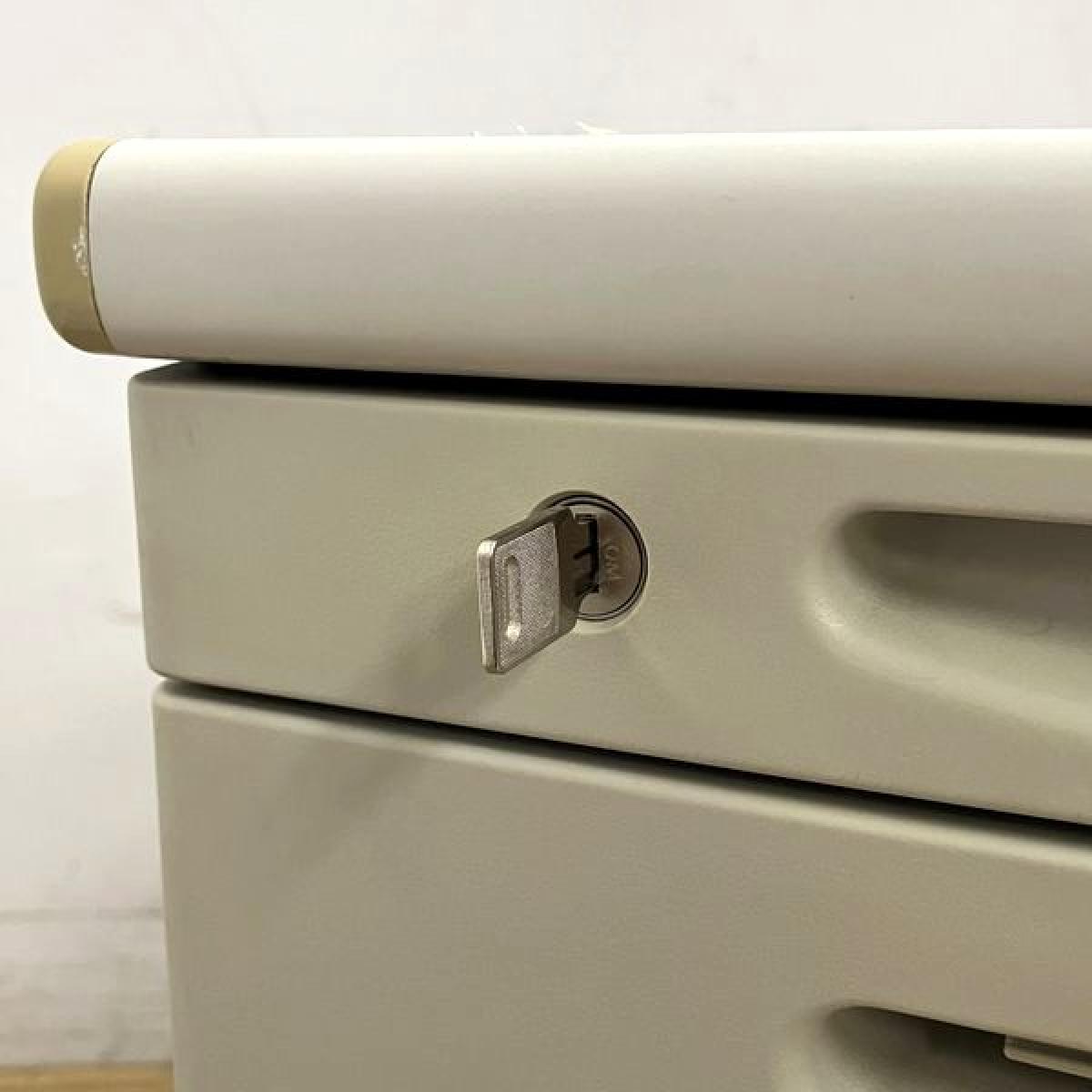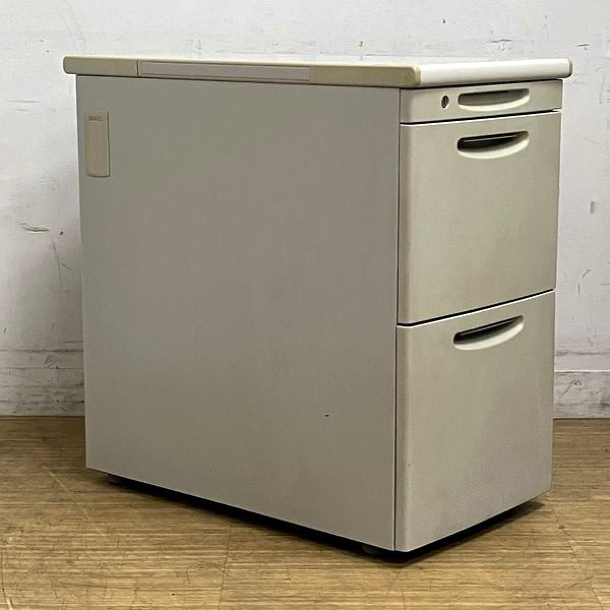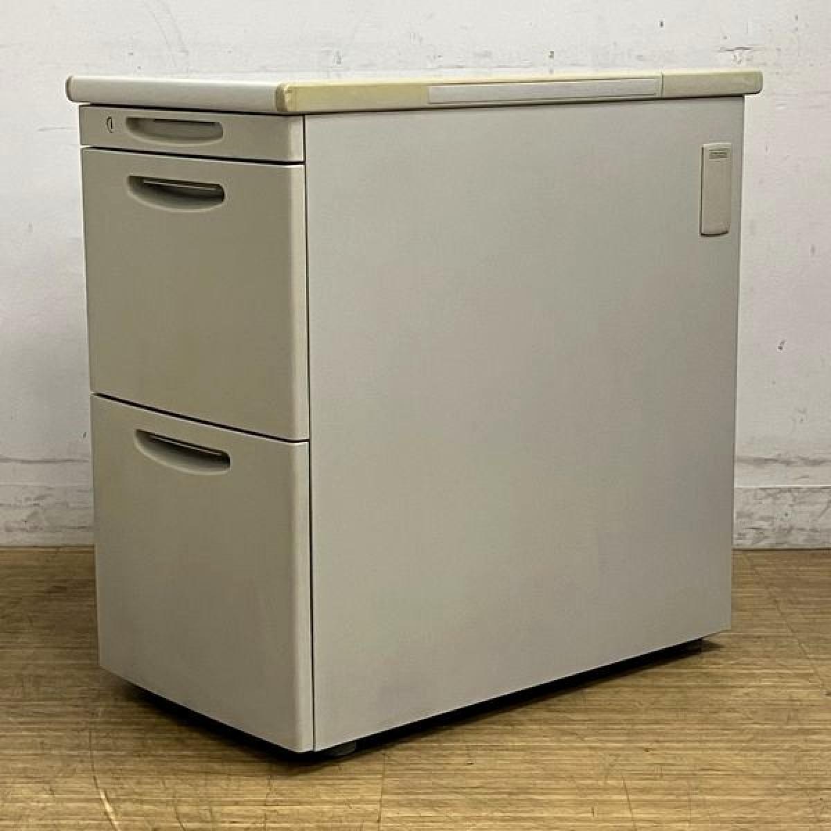 3段脇机 オカムラ SD A4×2+ペントレー ニューグレー シリンダー錠 デスクサイド収納 ※樹脂分に日焼け有- 名古屋千種店