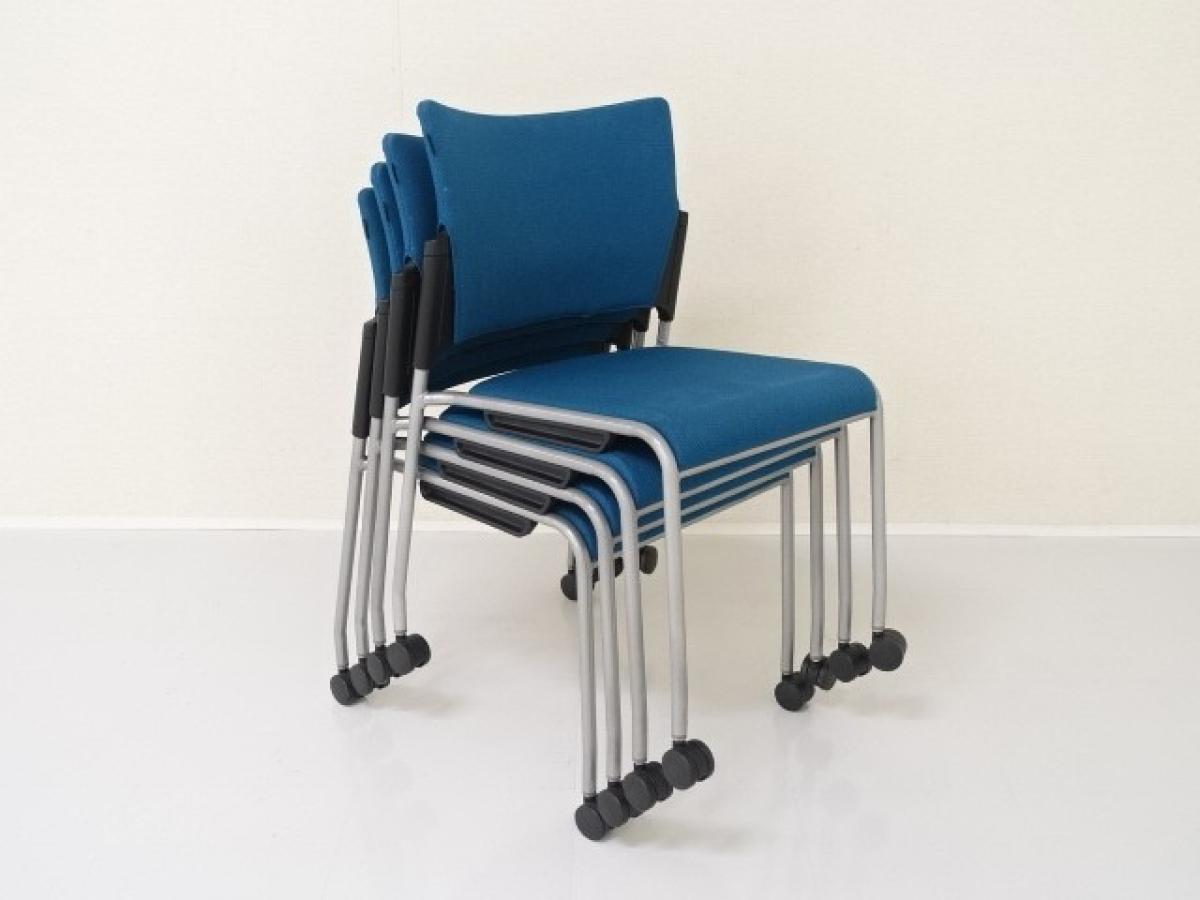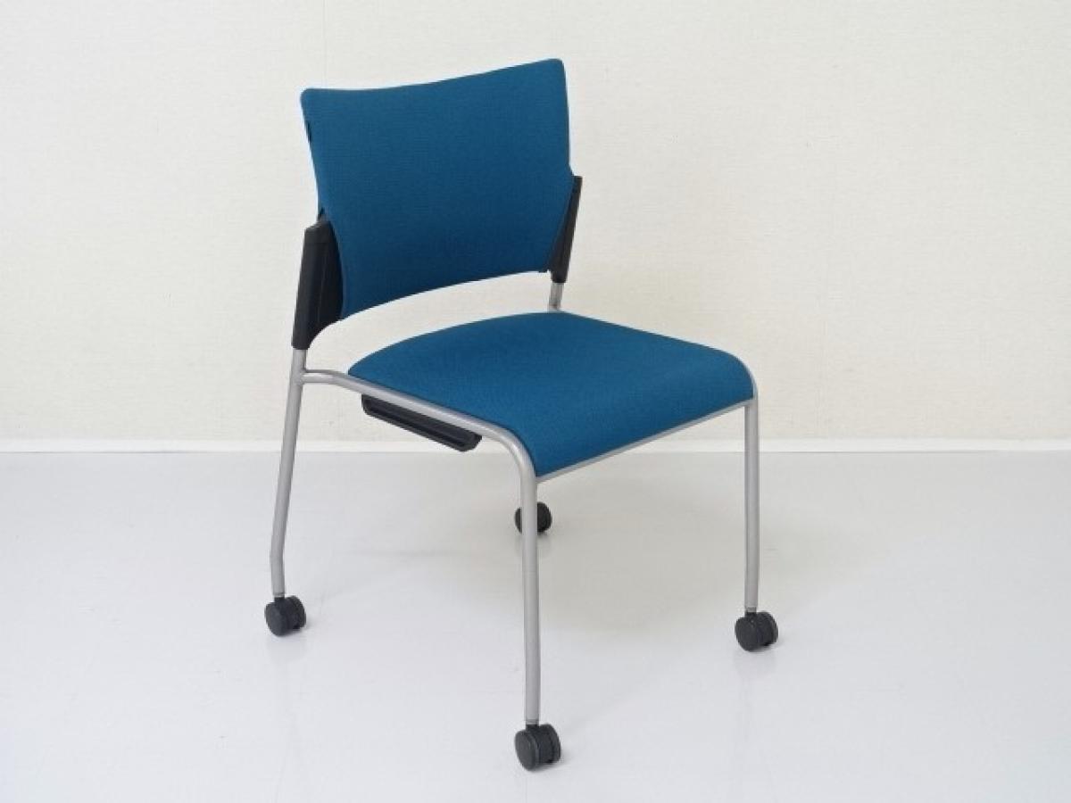 【遠方倉庫在庫品】【ロット商品!】■オカムラ(okamura) レーテシリーズ ■背・座:ターコイズブルー 布張り ■脚:シルバー(キャスター付) ■スタッキングチェア ■ミーティングチェア 【RA】在庫がある店舗一覧
