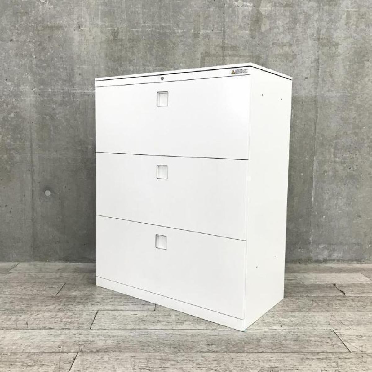 【ファイル収納にオススメ!高品質で使いやすい人気シリーズの3段ラテラル書庫!】■オカムラ(okamura)製 レクトラインシリーズ 3段ラテラル書庫 ローキャビネット H1100㎜ ■ホワイト ■シリンダー鍵 ■天板付き(天板:ホワイト) ※日焼け有