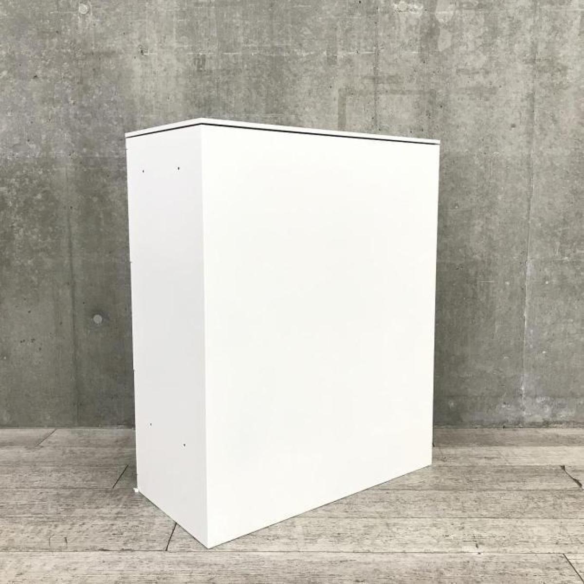 オカムラ レクトライン 3段ラテラル書庫 ホワイト天板 シリンダー錠 鍵付き ※取っ手部分に若干日焼けあり