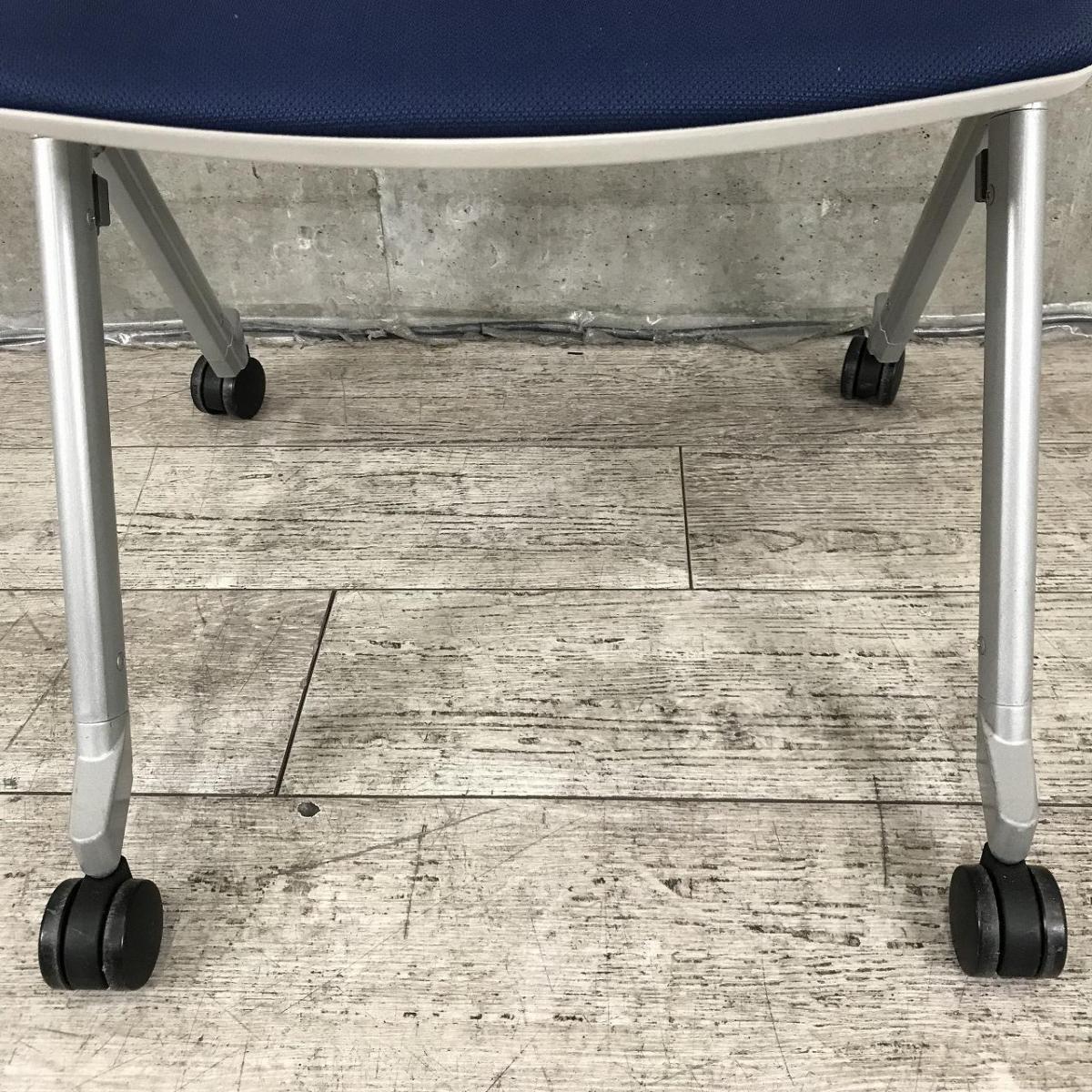 【平行収納、重ねての収納どちらも可能な珍しい仕様のミーティングチェア!】■ウチダ(UCHIDA)製 FM-320シリーズ スタッキングチェア ネスティングチェア 肘無し キャスター付 ■ダークブルー【AD】在庫がある店舗一覧