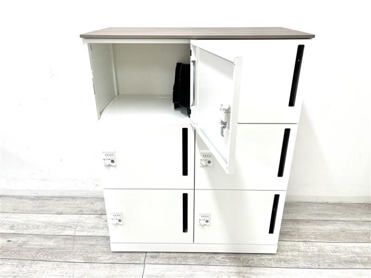 【定価約20万円】【アクティブな働き方をサポート!個人の荷物を収納可能な6人用パーソナルロッカー入荷!】■オカムラ/ピクスライン ■ダイヤル錠 ■本体ホワイト 天板ナチュラル ■ポス口あり ■電源ユニットあり- 仙台店