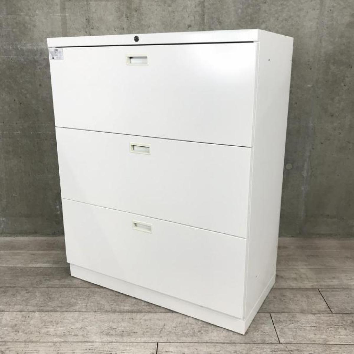 【汎用性抜群の大容量書庫!抜群の収納力で書類をスッキリ整理!】■クロガネ(KUROGANE)製 ■3段ラテラル書庫 ■ローキャビネット W900×D400×H1100㎜ ■シリンダー錠 ■カラー:ホワイト- つくば店