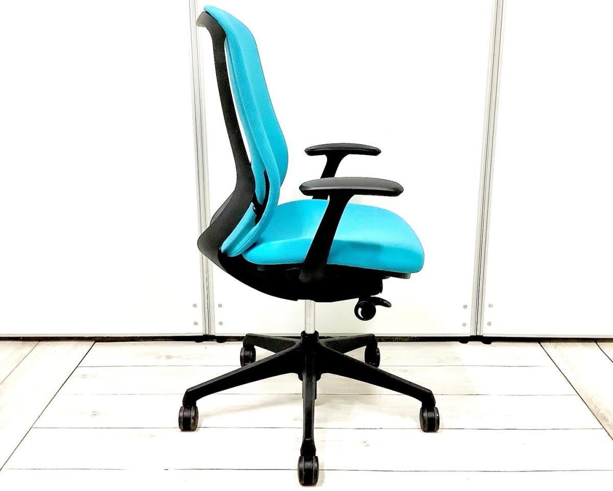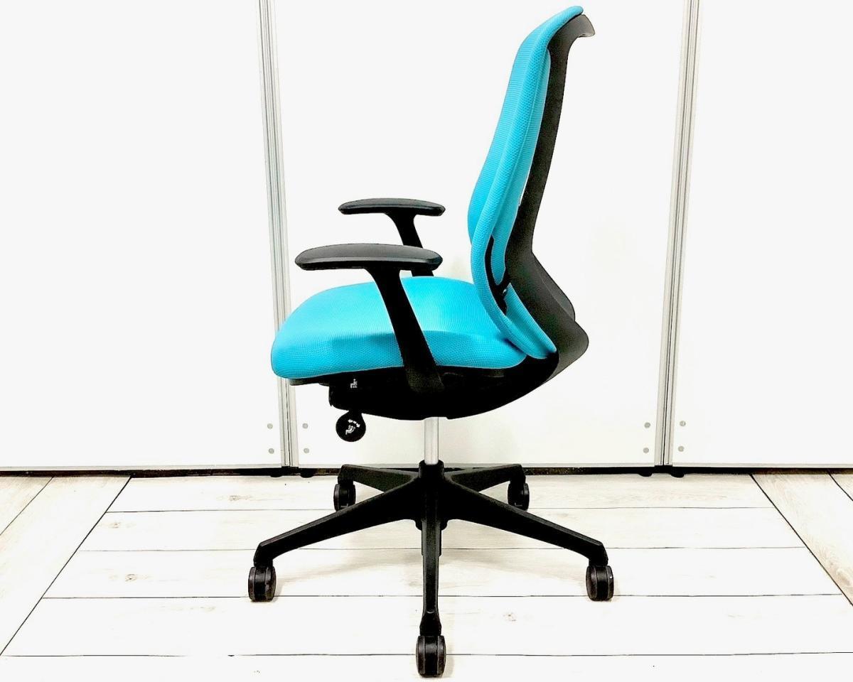 【いま人気のワーキングチェア!】■オカムラ シルフィーチェア 肘付 ブルーグリーン ヘッドレスト付 エクストラハイバック ■背のカーブを変えられる新感覚のオフィスシーティング!【Okamrua Sylphy】★