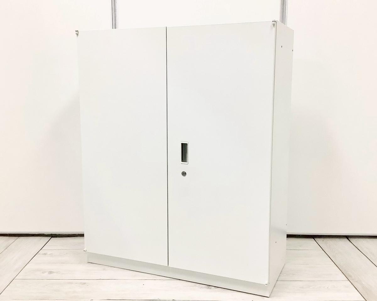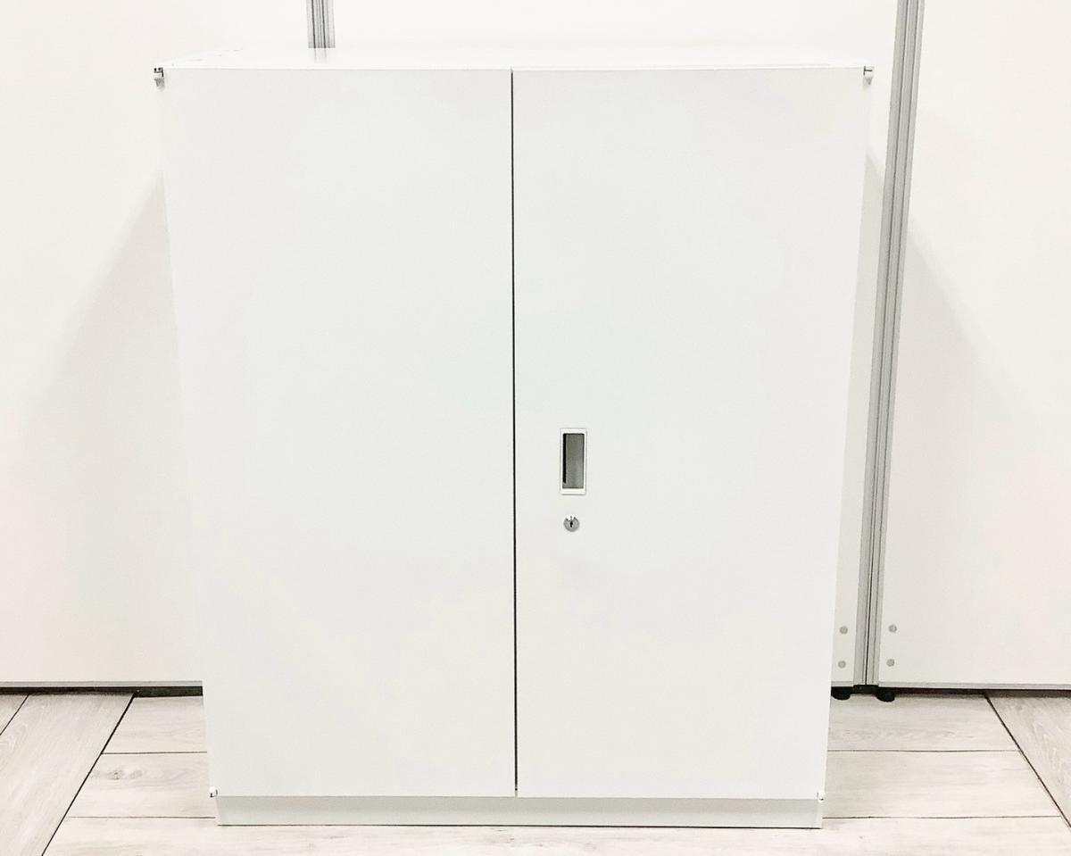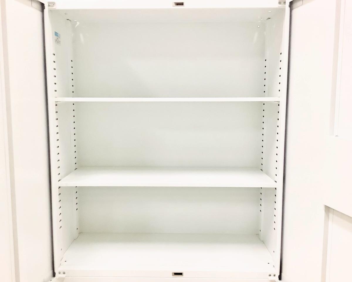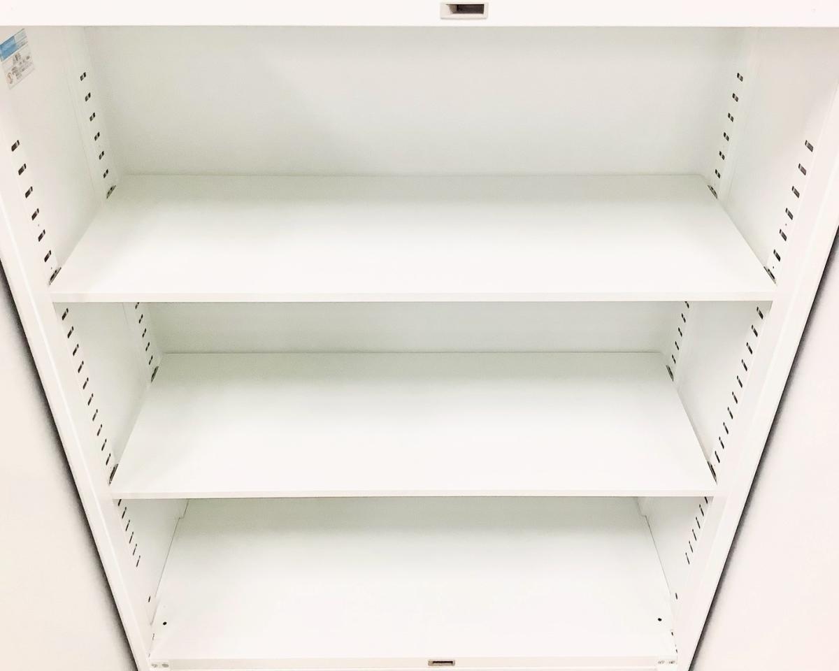 【汎用性抜群の大容量書庫!抜群の収納力で書類をスッキリ整理!】■クロガネ(KUROGANE)製 ■両開き書庫 ■ローキャビネット W900×D400×H1100㎜ ■シリンダー錠 ■カラー:ホワイト- つくば店