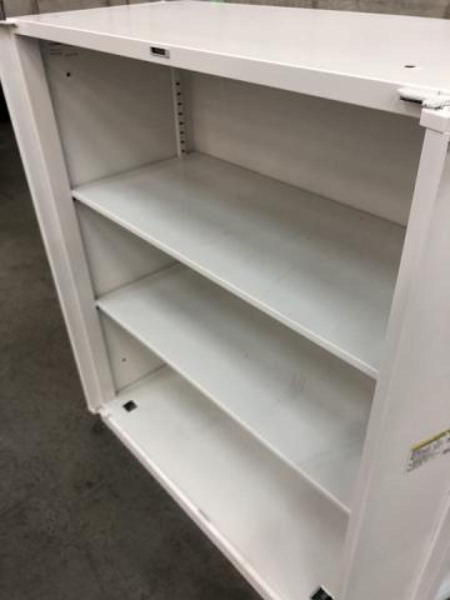 - 多数不具合あり引出の開閉不可、施錠不可、棚板無しといったその書庫の本来の効用を果たすための機能以外の多数が使用不可(例、扉、引出の開閉がしづらいなどがある。 )