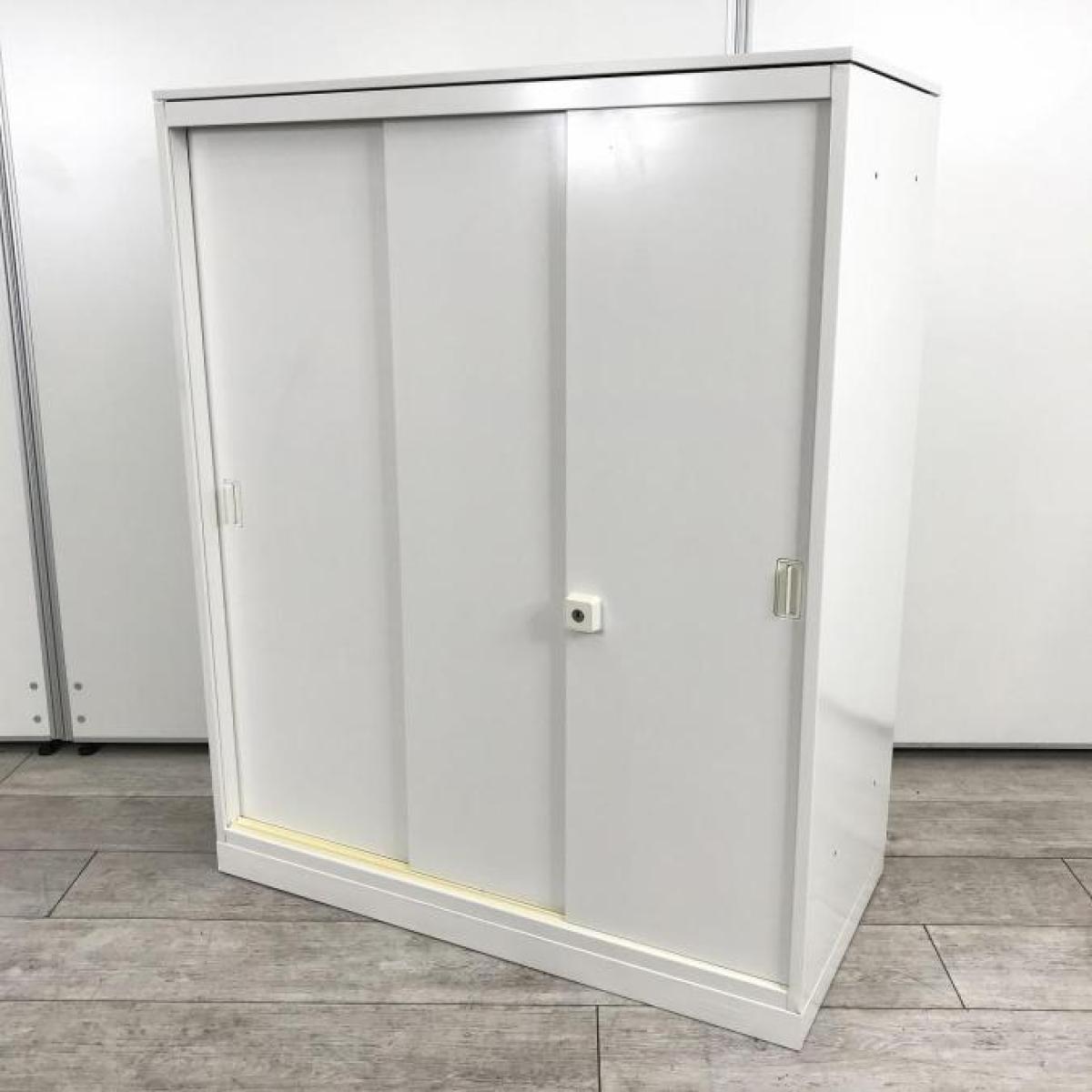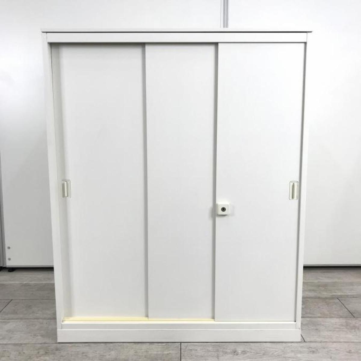 オカムラ製 人気レクトラインシリーズ ホワイト シリンダー W800xD450XH1050 3枚引戸 ※ベースなし 3枚引き違い書庫!!
