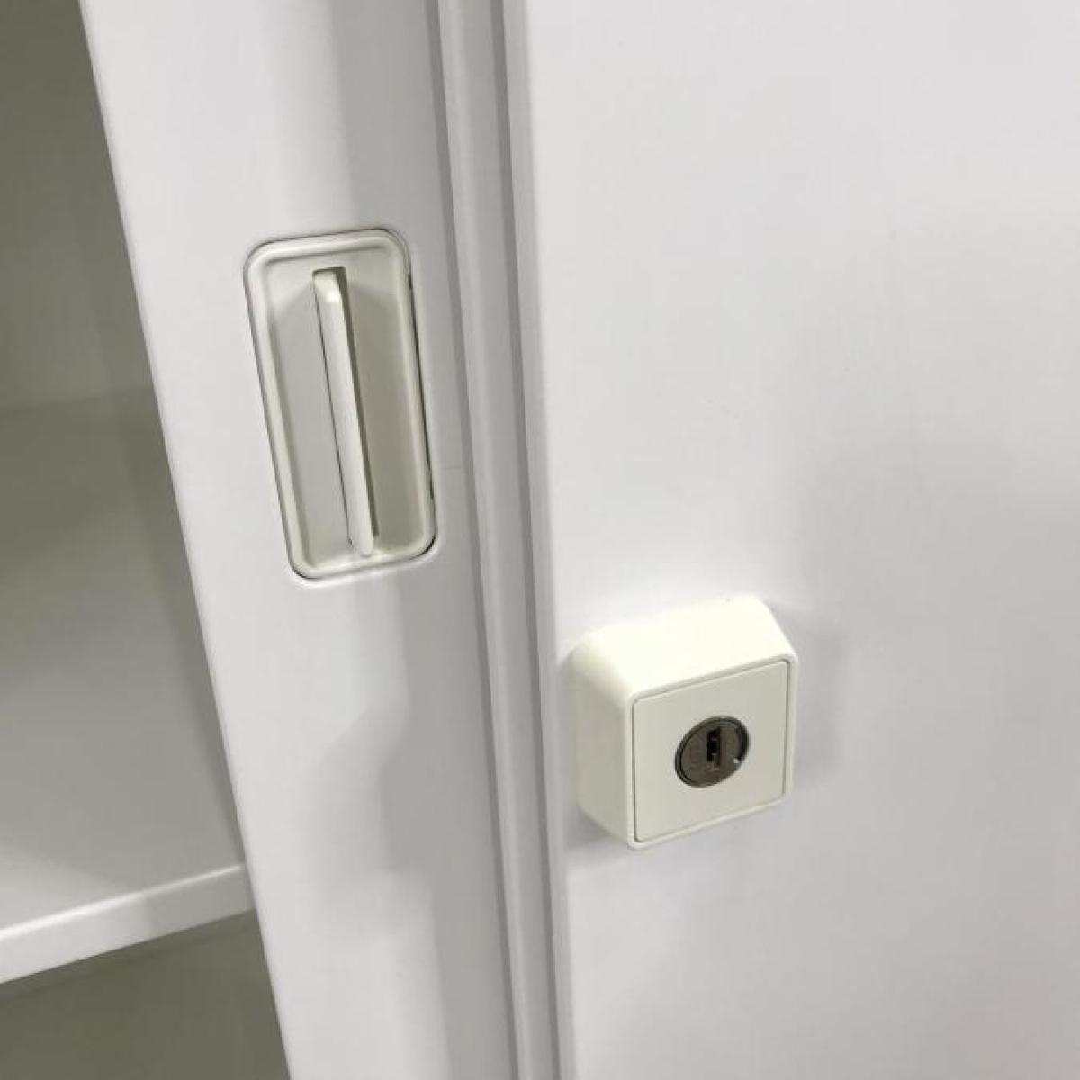 2枚引き戸書庫 オカムラ レクトライン 鍵付き シリンダー錠 ホワイト 天板無し スライド式の扉のため導線を邪魔しません