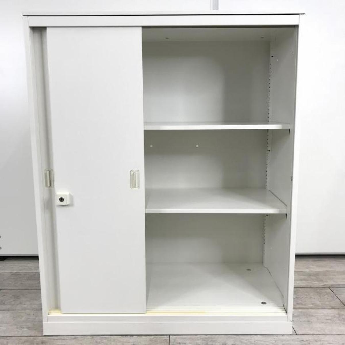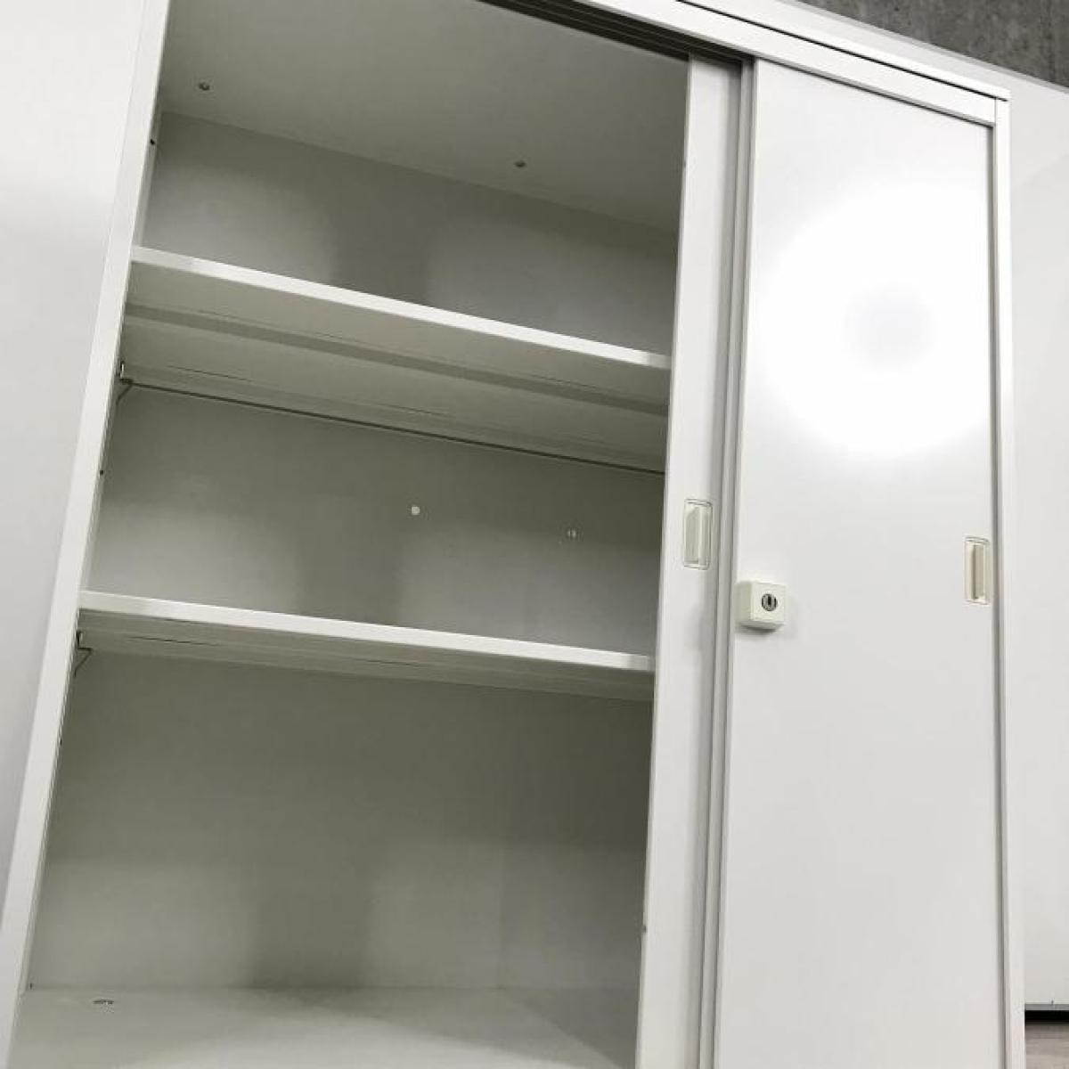 【在庫入替セール品】省スペース/収納庫/人気 オカムラ(okamura)製 レクトライン 引き違いローキャビネット ホワイト 天板あり- 千葉店