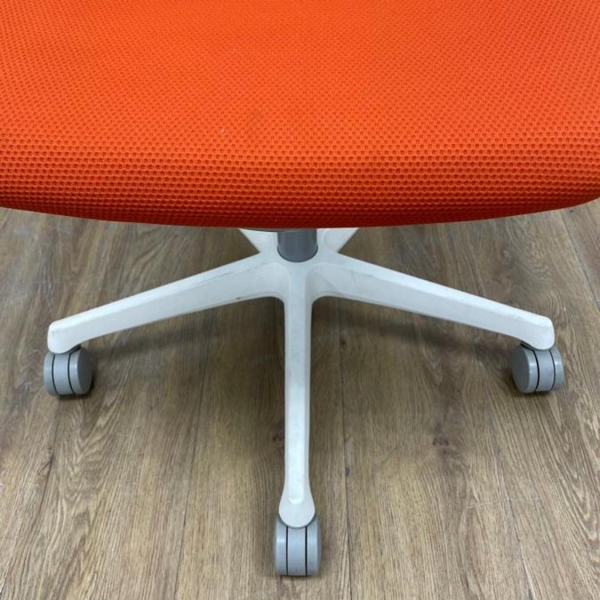 オカムラ製 フルーエント(Fluent) オレンジレッド ホワイトフレーム 肘無し ローバック 背面メッシュ 背中を立体的に包み込む! シルフィの座り心地を低コストで再現! 肘無しローバックチェア!!