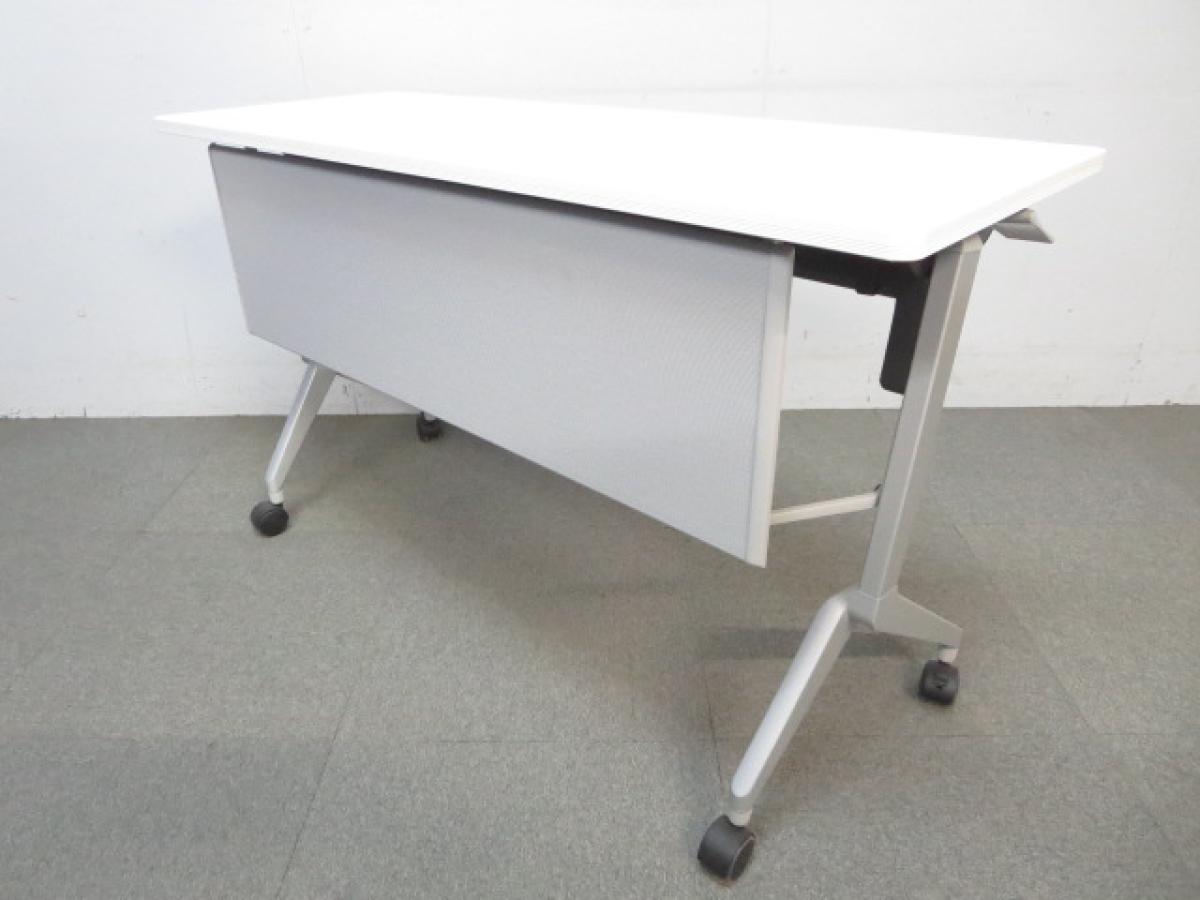 ☆W1500×D450mm!【スタイリッシュなデザイン!】■コクヨ サイドスタックテーブル ホワイト 幕板パネル付【KOKUYO Leafline】【折りたたみテーブル】