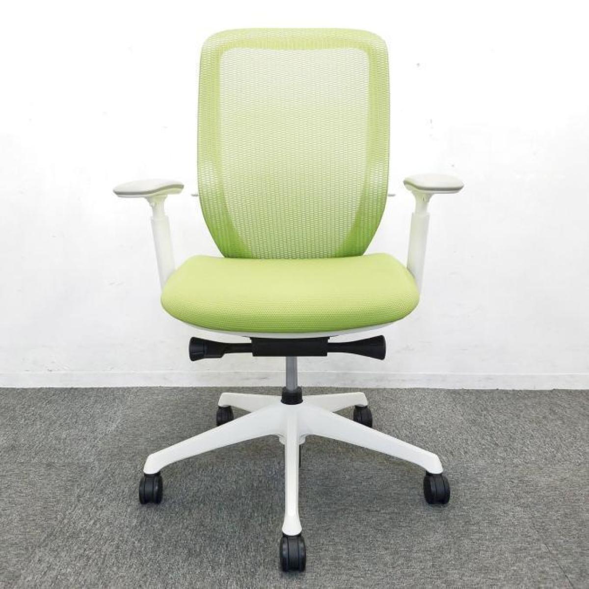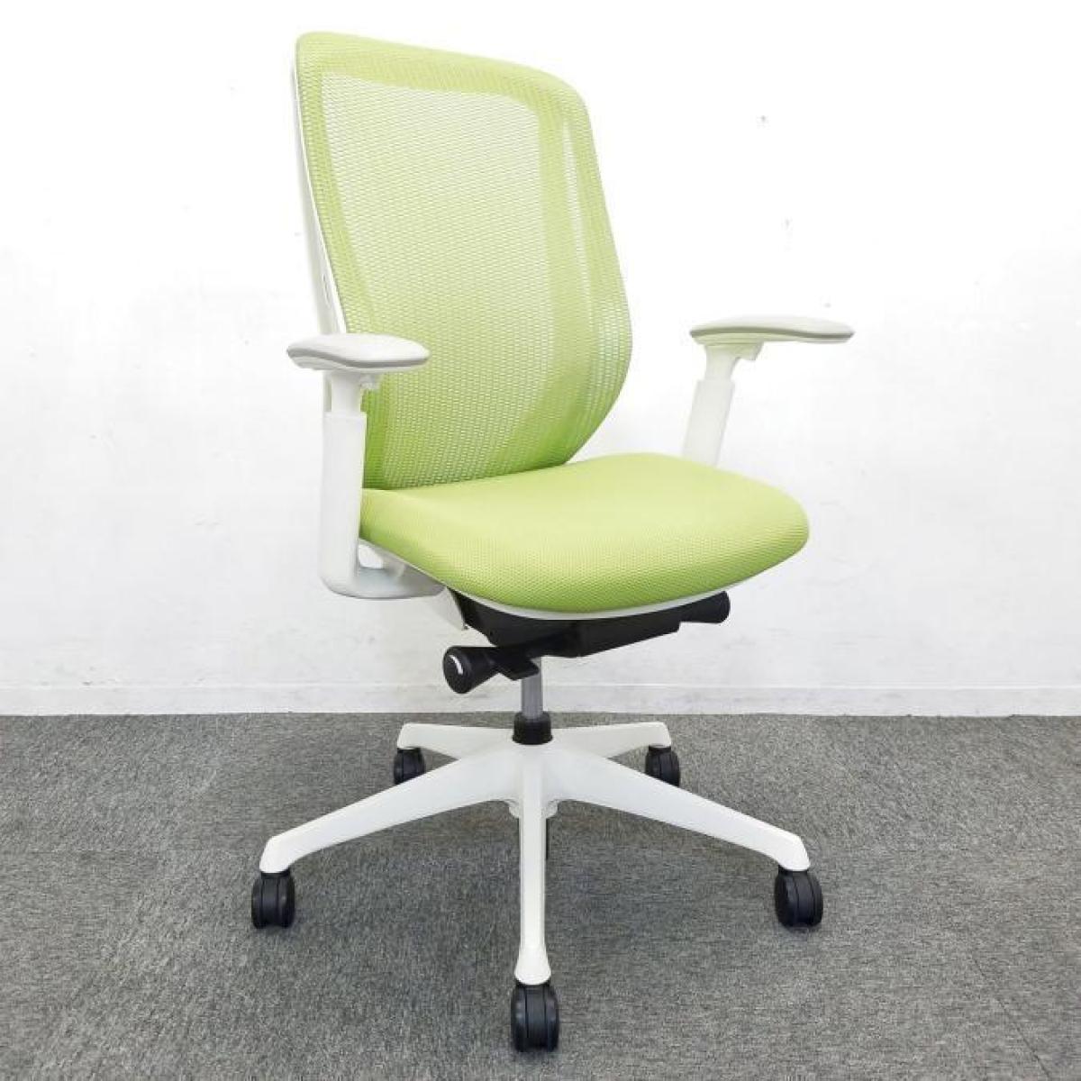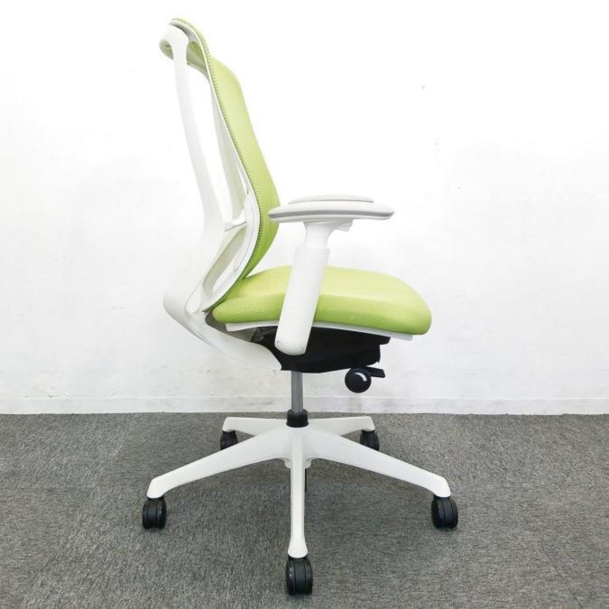 【包み込まれるような快適な座り心地が人気です!】■オカムラ シルフィーチェア 可動肘付 ライムグリーン ■背のカーブを変えられる!新感覚のオフィスシーティング!★- 川崎店
