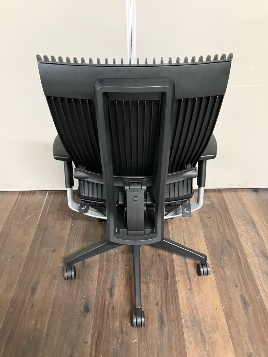 一番の特長は、着座時にチェアがピタっと体にフィットしてくれることです。 人がチェアの座り心地を調節するのではなく、チェアが人に合わせて動くのです!着座時に座面が沈み込みながら後方へスライドし、それと同時に背もたれの腰部分が前にせり出し、「ずっと座っていたくなる」と言われるほどの座り心地に調節してくれます。それを実現しているのが、A.L.S(アクティブ・ランバー・サポート)機構とP.S.S(パッシブ・スライド・シート)機構です。 さらに、背もたれにかかる体圧を徹底的に分析して作られた絶妙なカーブが、常に腰をサポートしつつ背骨のラインに沿ってくれます。