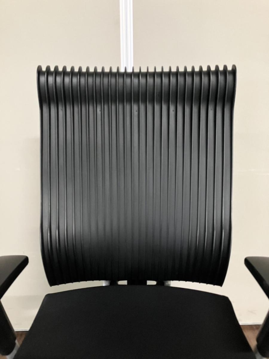 見た目は少し硬そうに見えるエラストマー素材ですが、座ってみると程よいしなり具合のやわらかな座り心地で、背中が痛くなるようなことはまるでありません。面ではなく線で支えることで、背面の通気性の良さは抜群です。