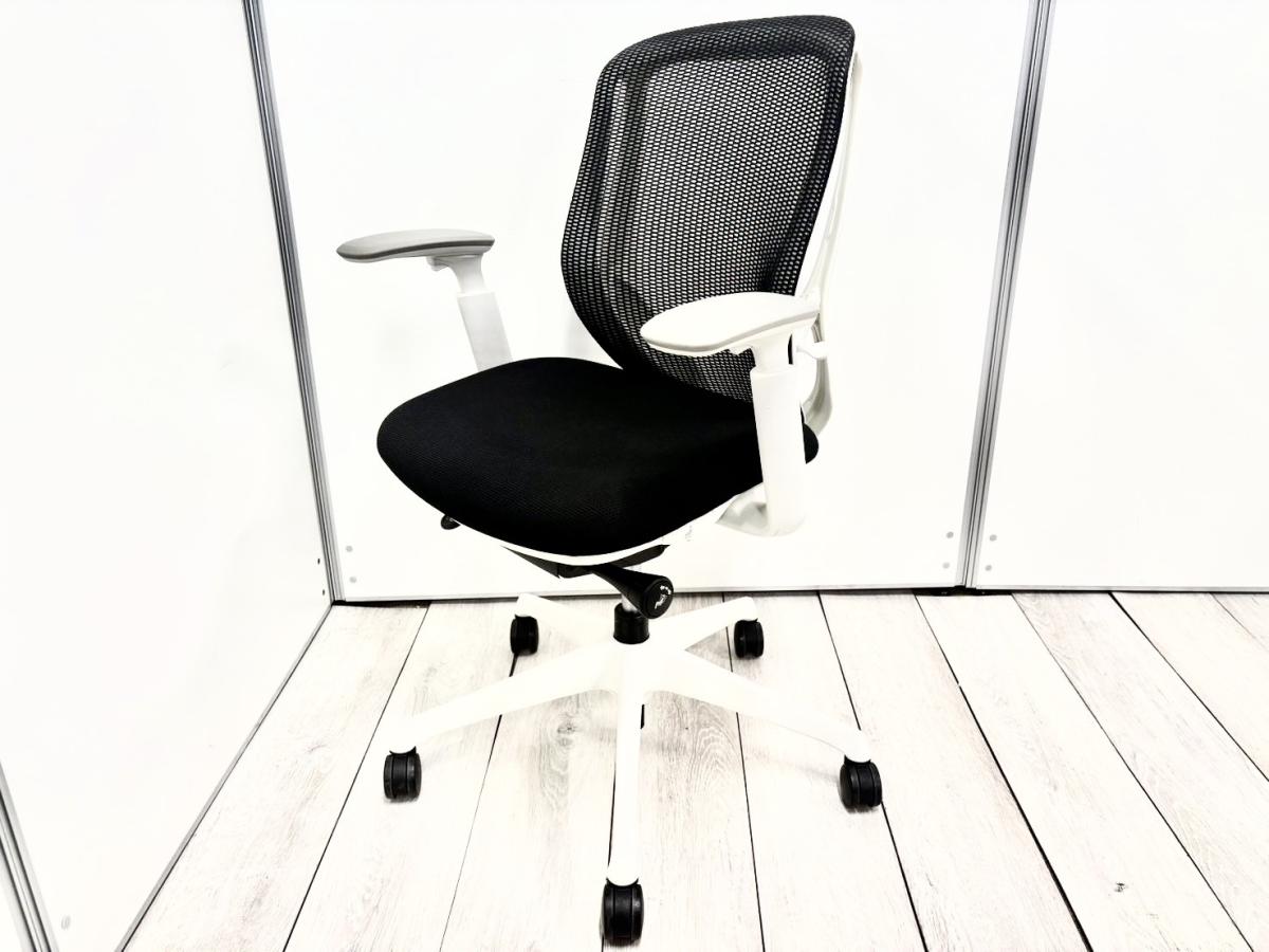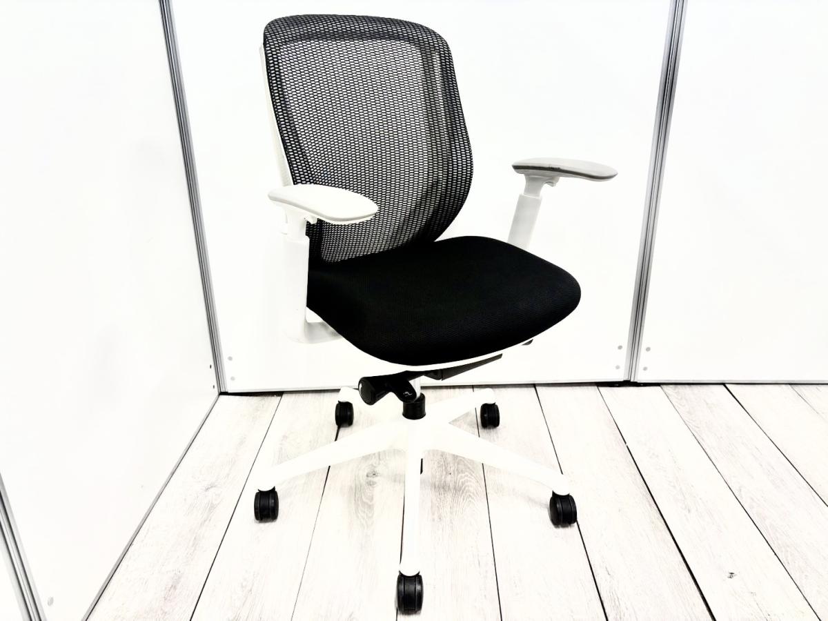 前傾チルト機能付き!オカムラ製品で最も人気を集める高機能メッシュチェア! ■オカムラ/シルフィー(Sylphy)/ブラック×ホワイトフレーム 可動肘付き ローバック 背面メッシュ- 立川・八王子店