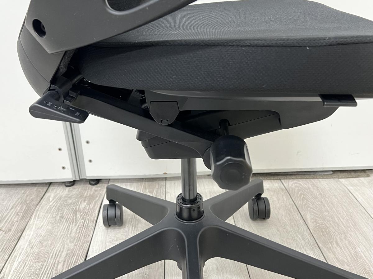 体格や作業姿勢に合わせたポジション設定が行える「座の奥行調節機構」、