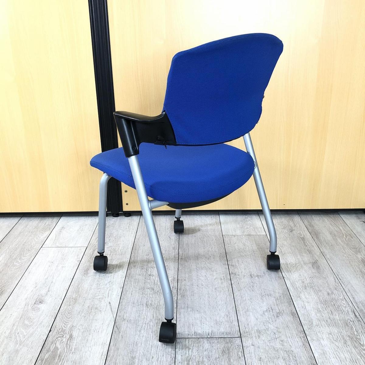 【シンプルスマートなスタッキングチェア!】■コクヨ(KOKUYO) プロッティ(Protty)チェア スタッキングチェア ミーティングチェア ■肘付き キャスター付き ■ブルー- 茨城南店