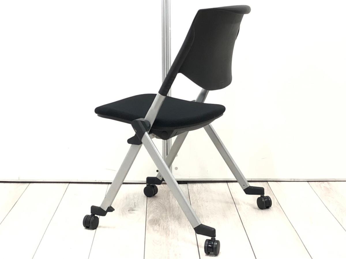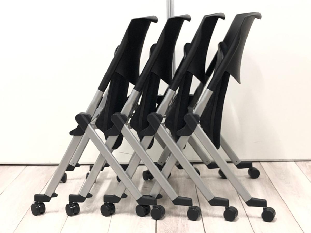 【4脚セット!】スタッキングチェアとネスティングチェア両方の使い方ができます!二刀流の簡易チェア! ■オカムラ/リータ(LITA)/ブラック 背面樹脂タイプ- 立川・八王子店