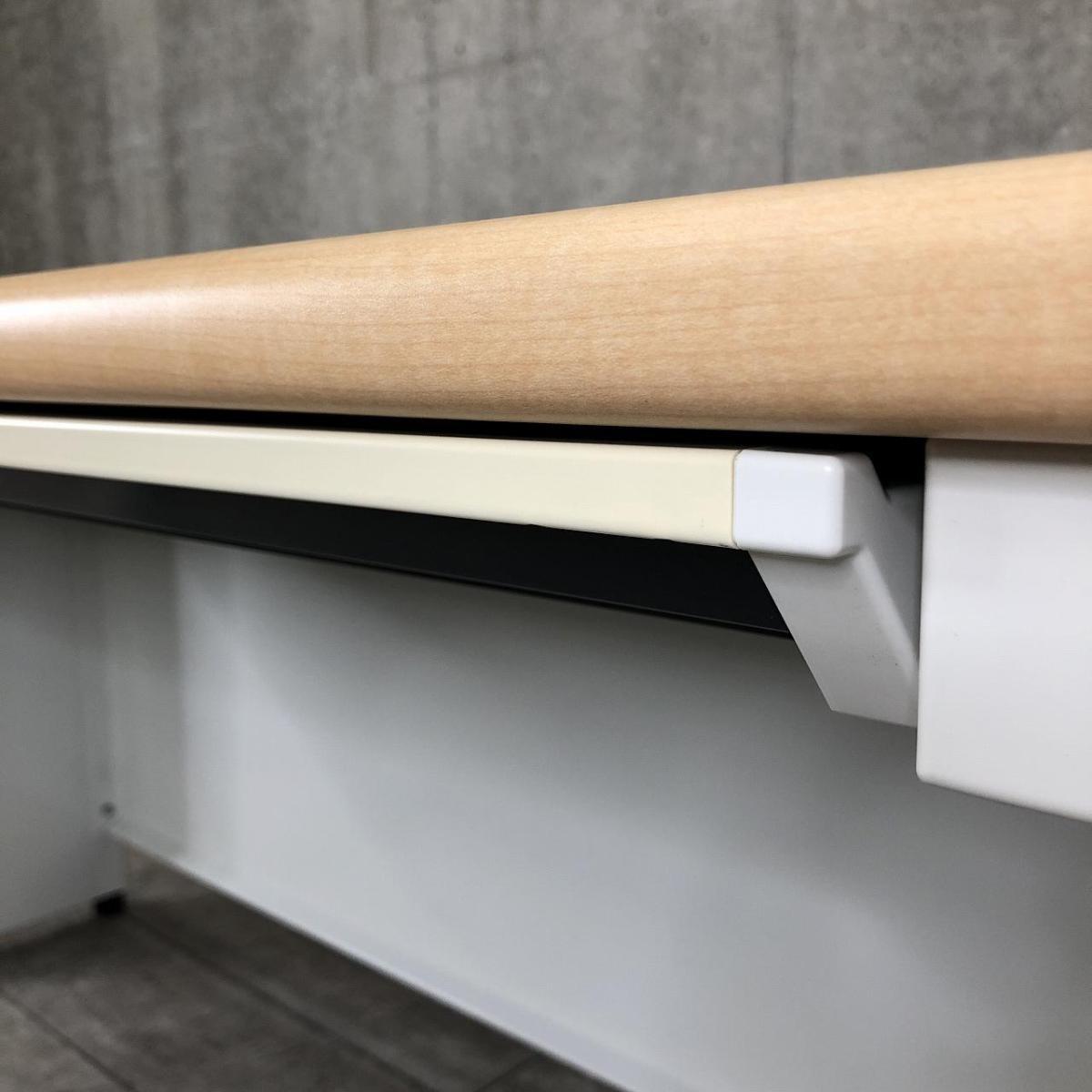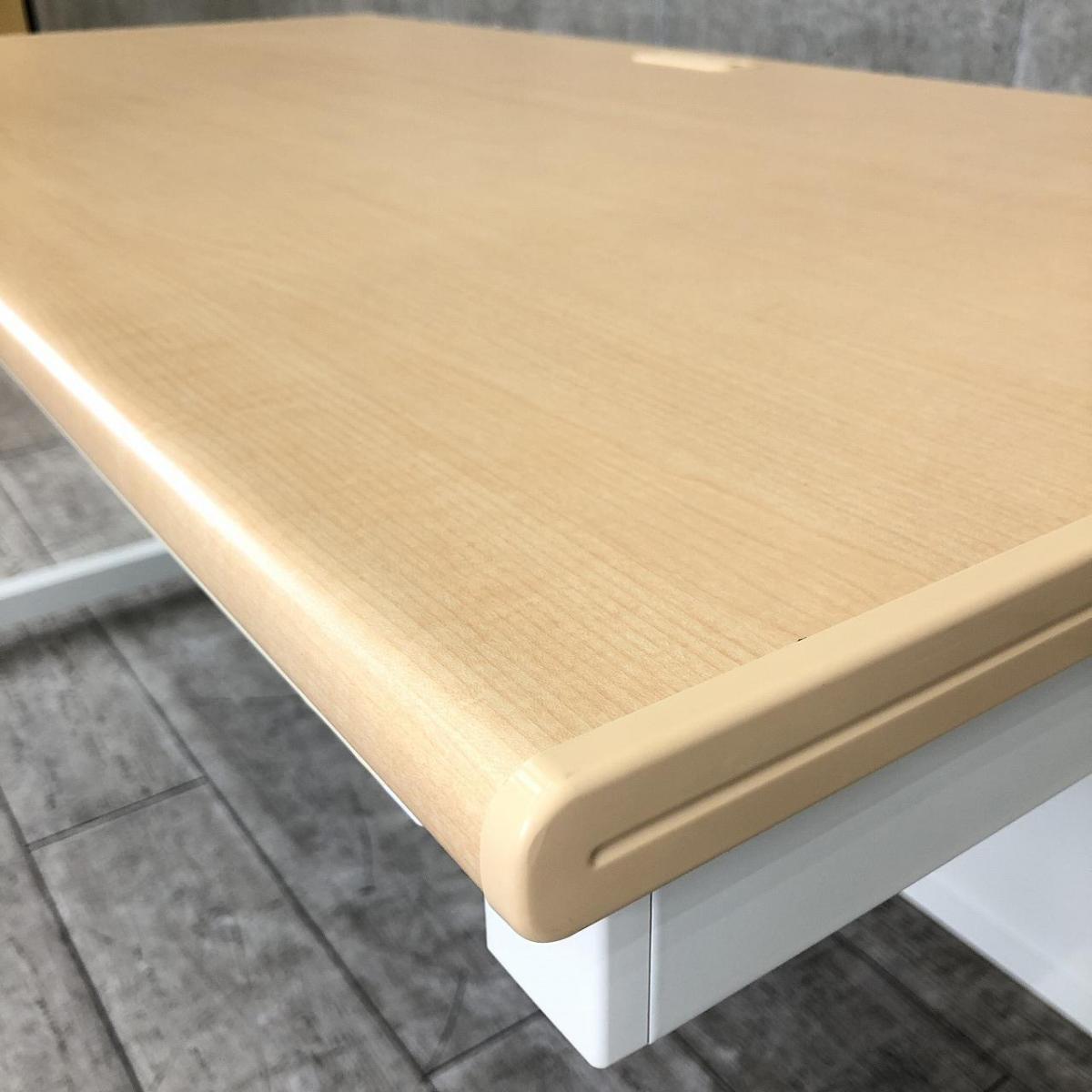 【定価約5万円】【作業効率アップにおすすめ!広々幅1400㎜サイズの平机!】■プラス(PLUS)製 フラットラインシリーズ 平机 引き出し付き ■1400×D700×H700㎜ ■木目調ナチュラル天板 本体 ホワイト 【弊社使用欄:A01032324】- 飯田橋サテライト