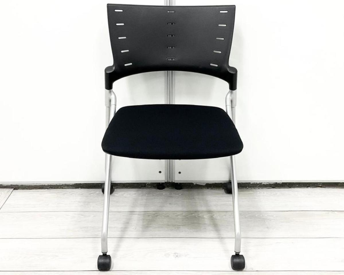 【関西倉庫在庫品】【平行に重ねて省スペース!使い勝手抜群のミーティングチェア!】■イトーキ マノスシリーズ ネスティングチェア 座ブラック 背ホワイト キャスター付【ITOKI Manos】【W】