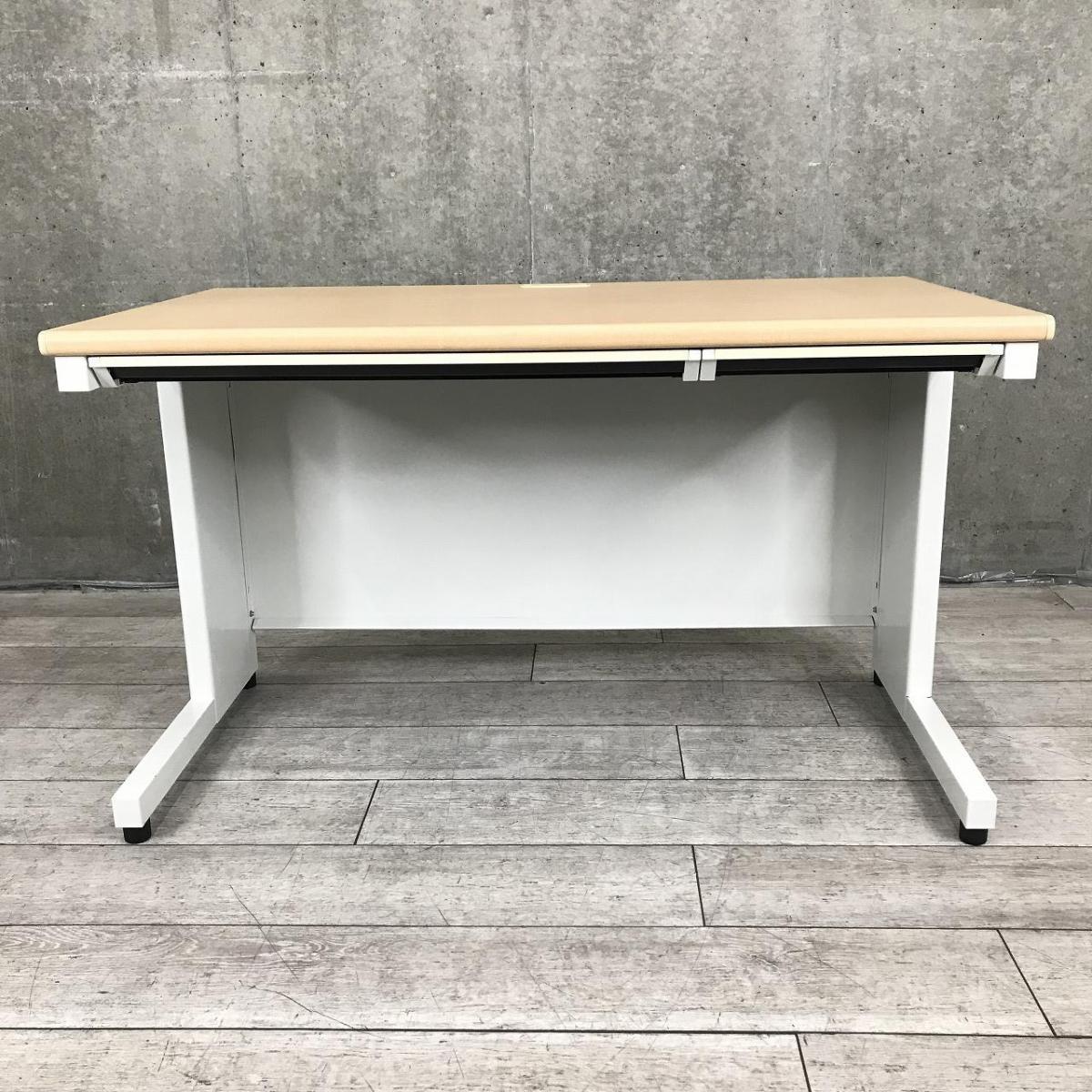 【ベーシックな使いやすさ・ローコストの引き出し付きデスク!】■プラス (PLUS) 製 フラットラインシリーズ 平デスク W1200mm 引き出し付(日焼け有) ■本体:ホワイト 天板:木目ナチュラル(メープル調) 【弊社使用欄:A01040783/A01035962】