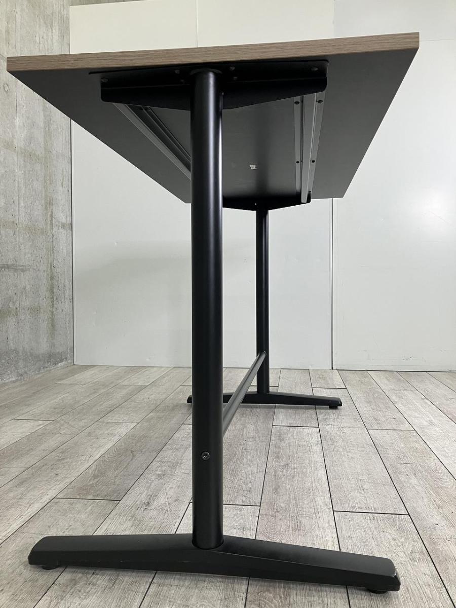 【ブラウン天板のカフェ風ハイテーブル!リフレッシュスペースなどに!】■オカムラ(okamura)製 ライブスシリーズ 角テーブル ミーティングテーブル カフェテーブル W1500×D750×H1000mm ■天板:木目ブラウン/脚:ブラック- 大阪心斎橋店