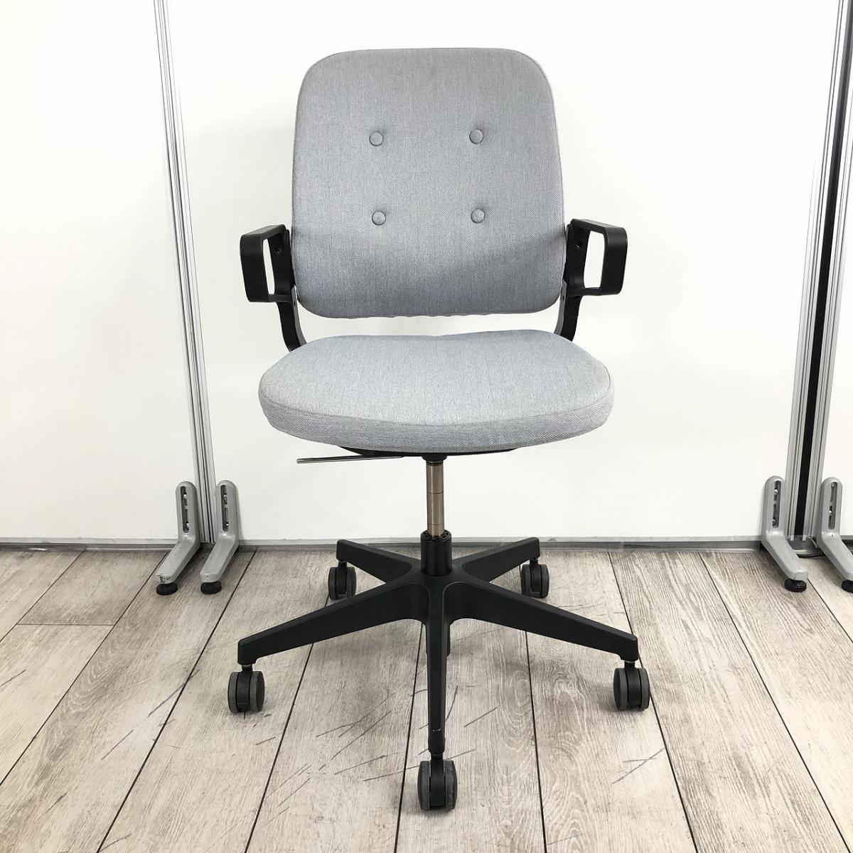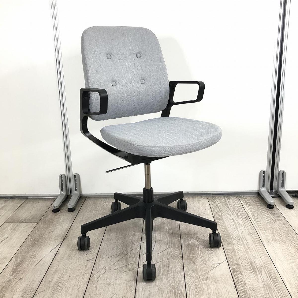 【様々な空間にフィットするスマートなデザイン!デスクワークにもミーティングにも!】■イトーキ(ITOKI)製 レヴィチェア(Levi) 肘付き ミーティングチェア ■サークル肘 ■5本脚タイプ/キャスター付き ■グレー×ブラックシェル- なんば日本橋店