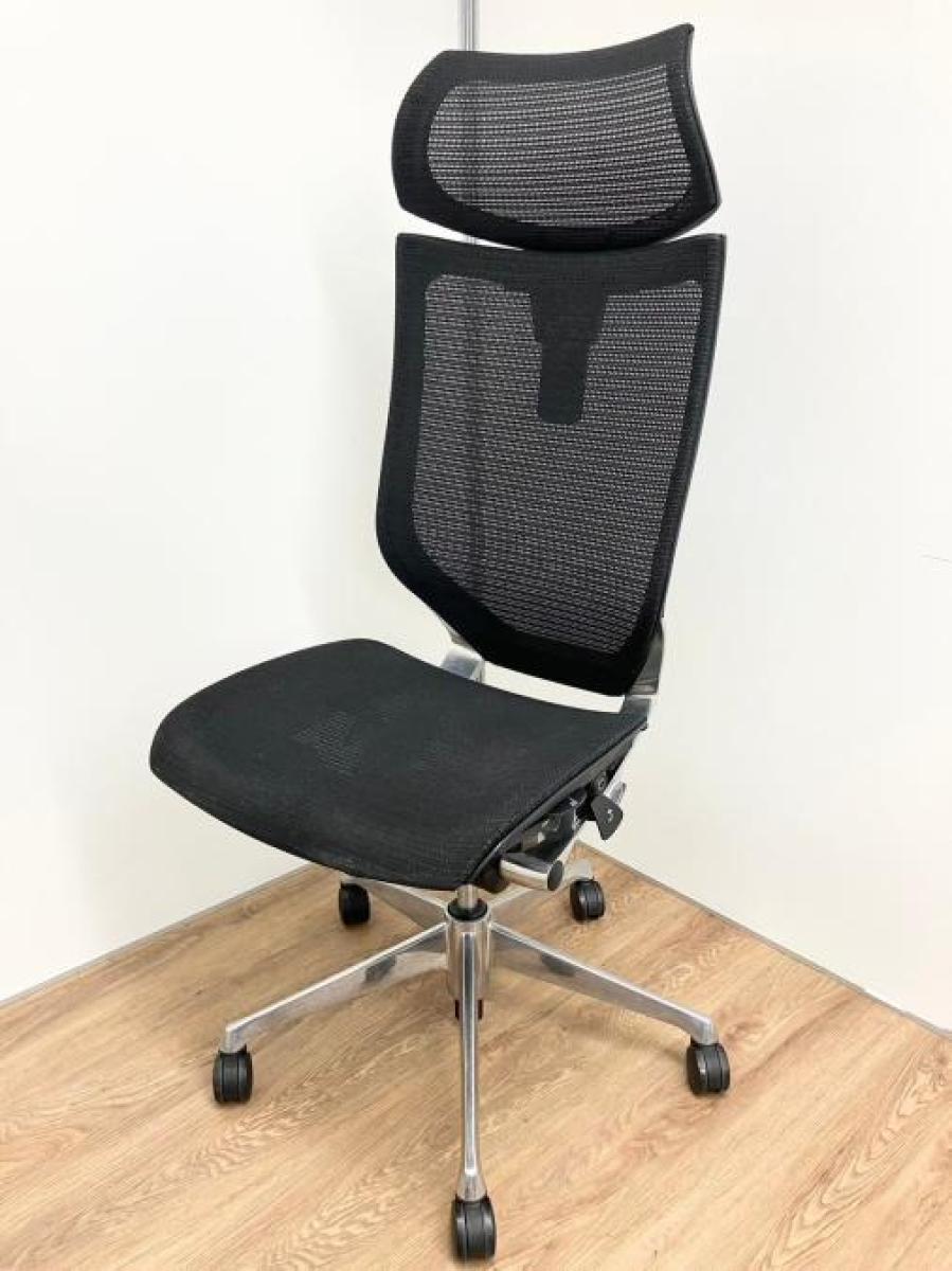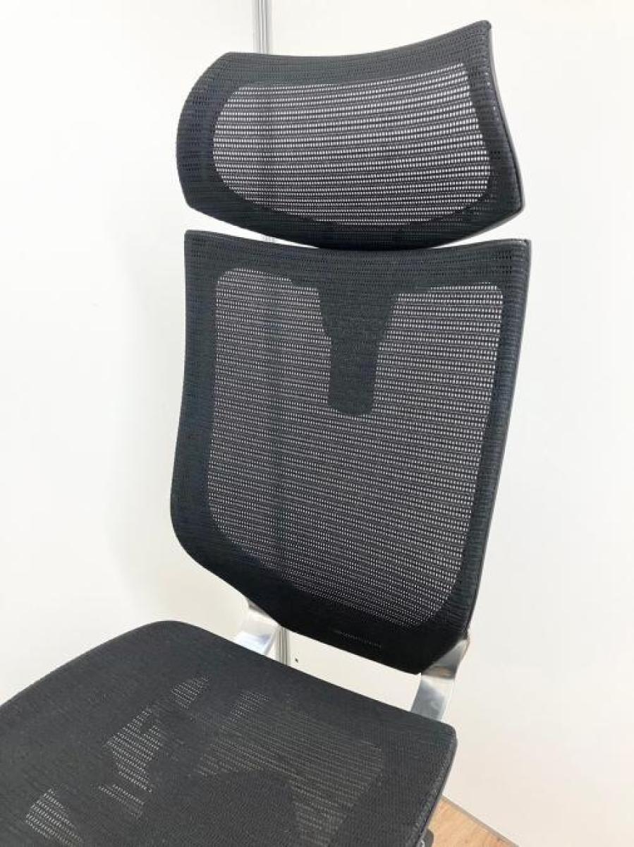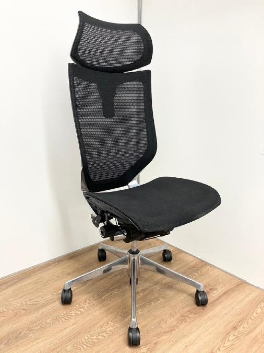【限定1脚のみ!ヘッドレスト付きの王道チェア!】オカムラ バロン ブラック 肘無 ヘッドレスト付 長時間 腰痛 自宅 在宅 イス メッシュチェア 中古家具 九州最大級《オフィスバスターズ福岡博多店は、福岡を拠点として、日本全国へ中古オフィス用品・オフィス家具を提供しております》- 福岡博多店
