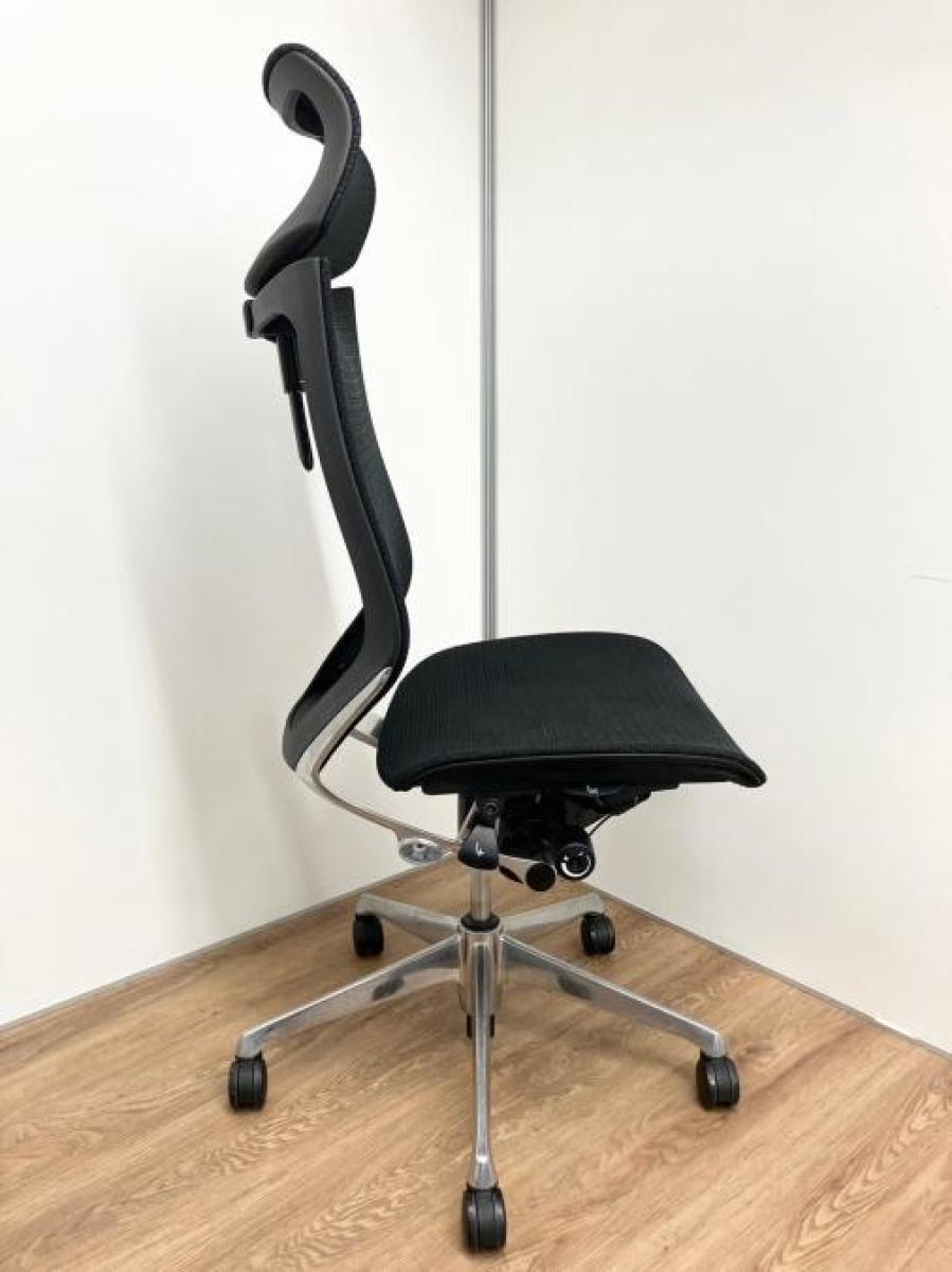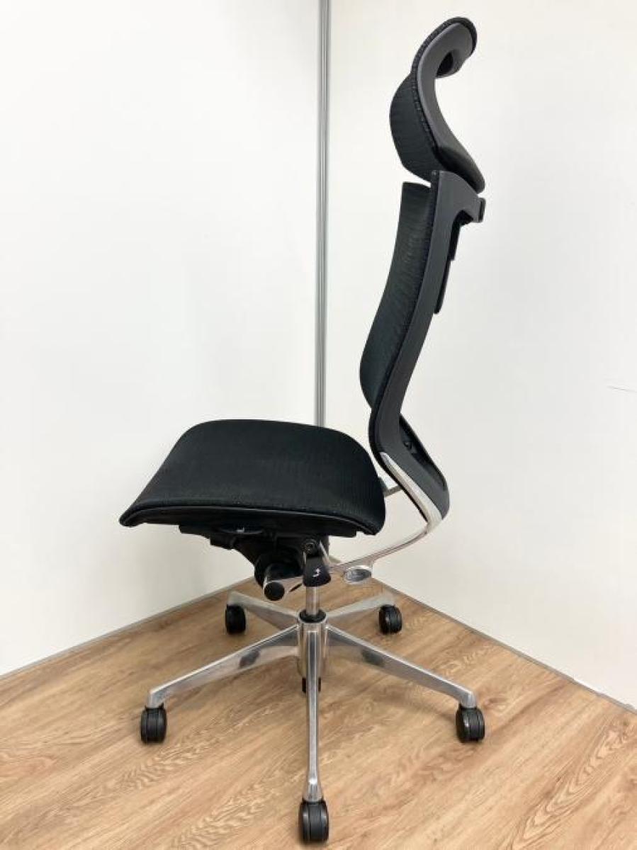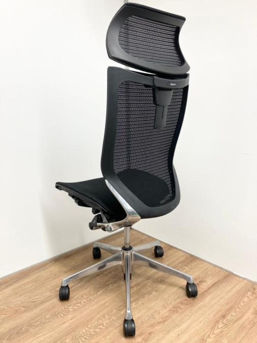 【限定1脚のみ!ヘッドレスト付きの王道チェア!】オカムラ バロン ブラック 肘無 ヘッドレスト付 長時間 腰痛 自宅 在宅 イス メッシュチェア 中古家具 九州最大級《オフィスバスターズ福岡博多店は、福岡を拠点として、日本全国へ中古オフィス用品・オフィス家具を提供しております》- 福岡博多店
