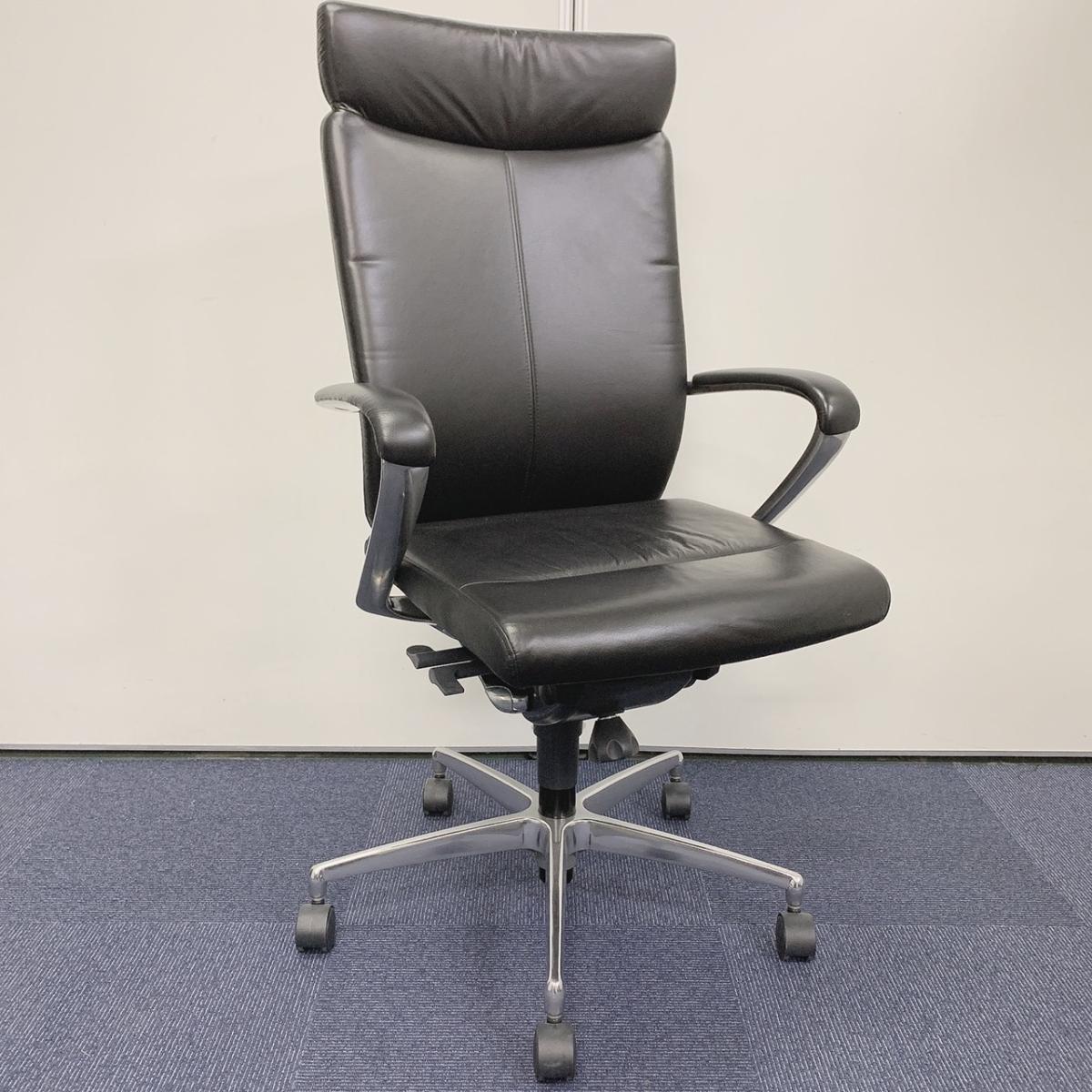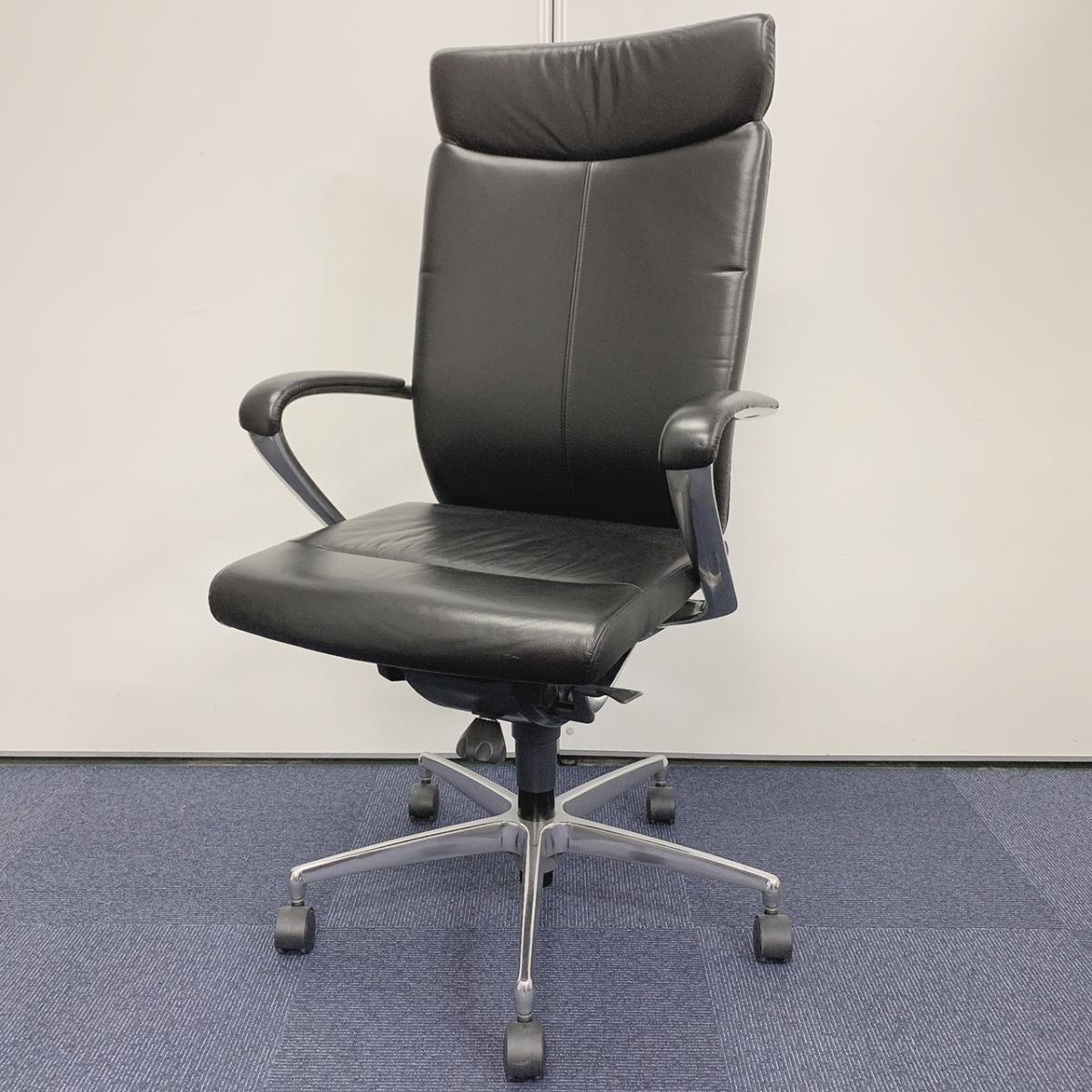【関西倉庫在庫品】■イトーキ/プレクサス エクストラハイバックチェア ■ブラック ■レザー地 ■2019年製【革製高級チェア! 状態良好!】- 新大阪店