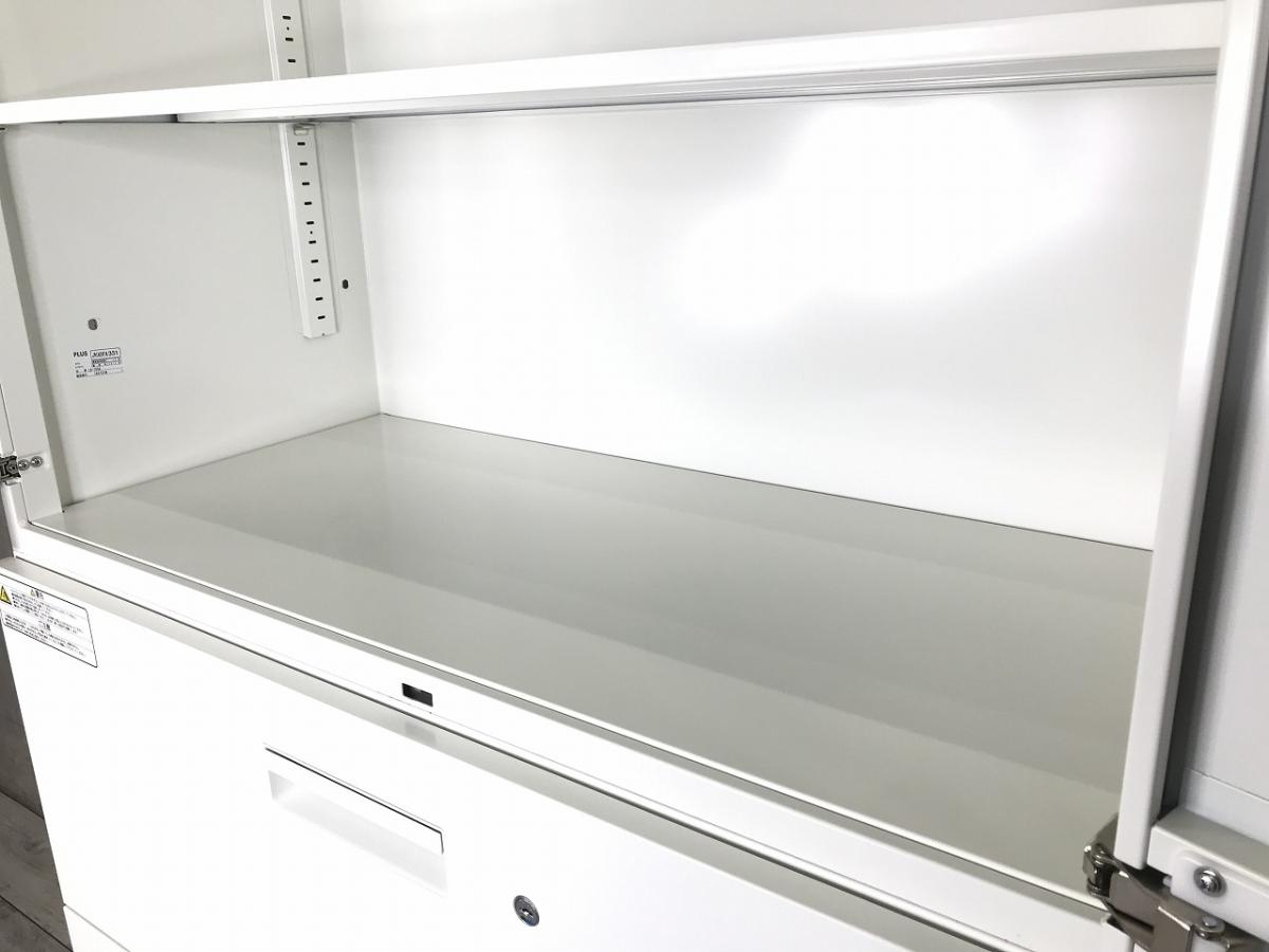 ★【T12】【商品入替のため、残り2台限り】プラス製 L6 ホワイト W900×D450×H2150 両開き+3段ラテラル シリンダー錠 オフィスの書類をスッキリ整理! 両開きと引き出し式の人気の組み合わせ! ハイキャビネット 上下書庫セット!!