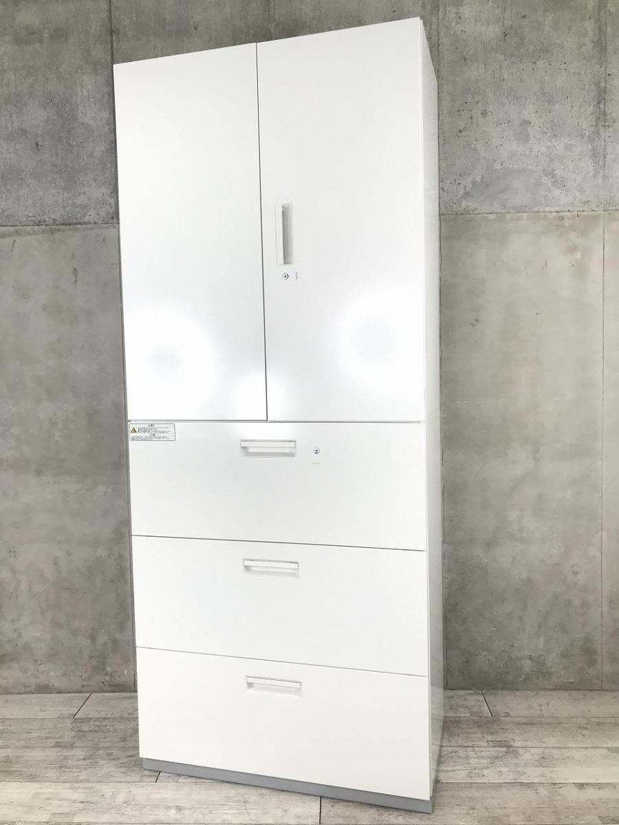 ★【T12】【商品入替のため、残り2台限り】プラス製 L6 ホワイト W900×D450×H2150 両開き+3段ラテラル シリンダー錠 オフィスの書類をスッキリ整理! 両開きと引き出し式の人気の組み合わせ! ハイキャビネット 上下書庫セット!!