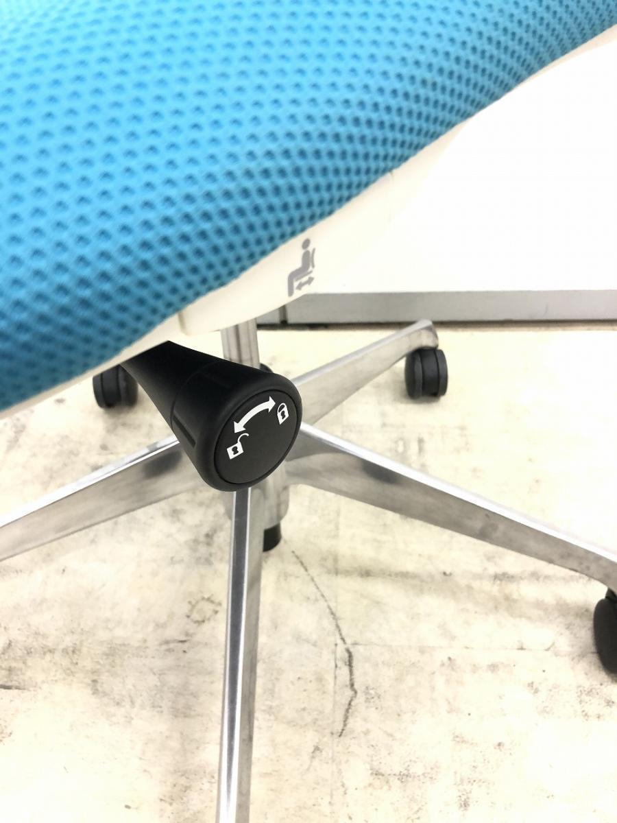 - 座面左下のダイヤルでリクライニングの固定と解除が行えます。 前傾ポジションをとることも可能です。