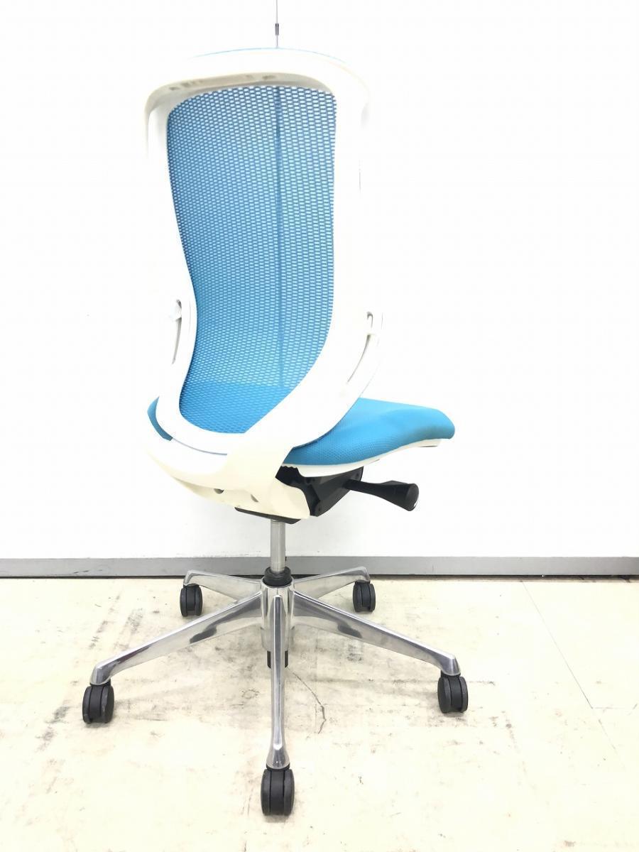 三次元曲面が身体にフィット!前傾チルト機能付き大人気メッシュチェア! ■オカムラ/シルフィーチェア(Sylphy)/ブルーグリーン×ホワイトシェル 肘付ハイバック ■背面メッシュ ■肘無し