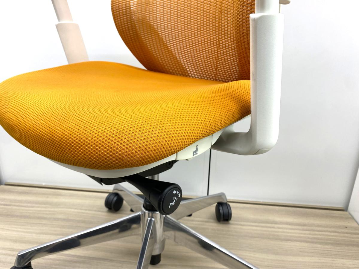 【在庫入替セール品!】【背のカーブを変えられる新感覚のオフィスシーティング!】■オカムラ シルフィーチェア 可動肘付 オレンジ ハンガー付 ホワイトフレーム ■新感覚のオフィスシーティング!【Okamrua Sylphy】