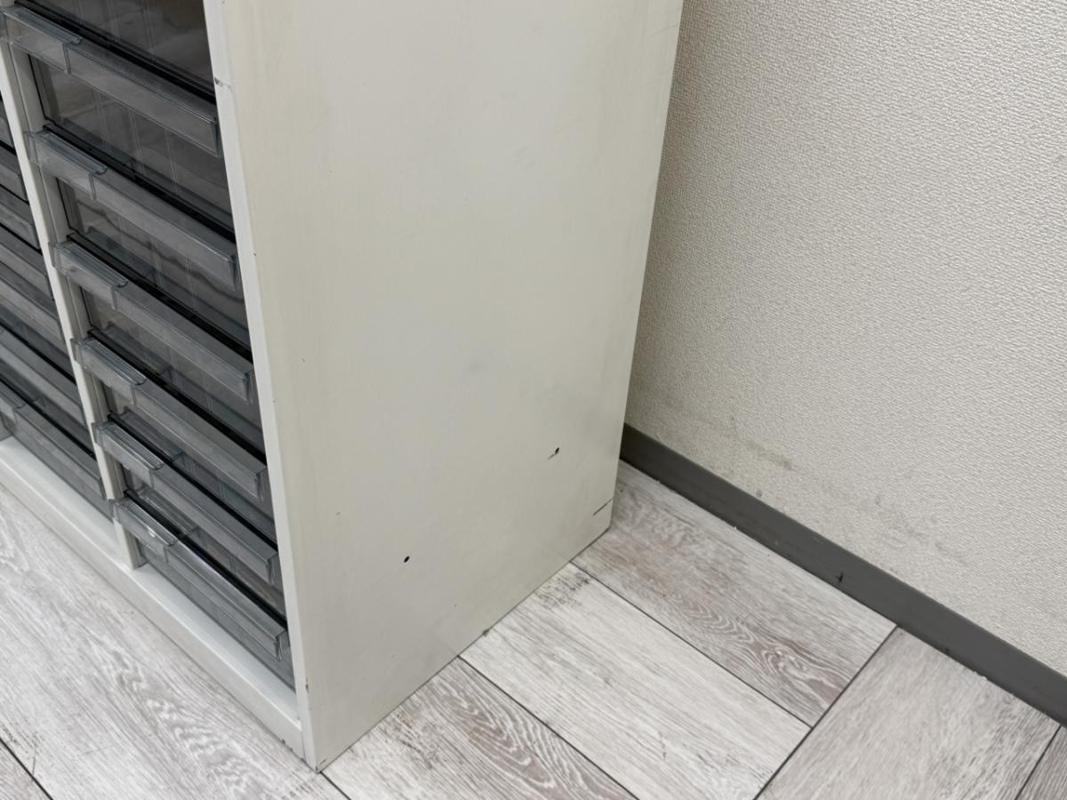 - 一部不具合ありそ引出の開閉不可、施錠不可、棚板無しといったの書庫の本来の効用を果たすための機能以外の一部が使用不可(例、扉、引出の開閉がしづらいなどがある。 )