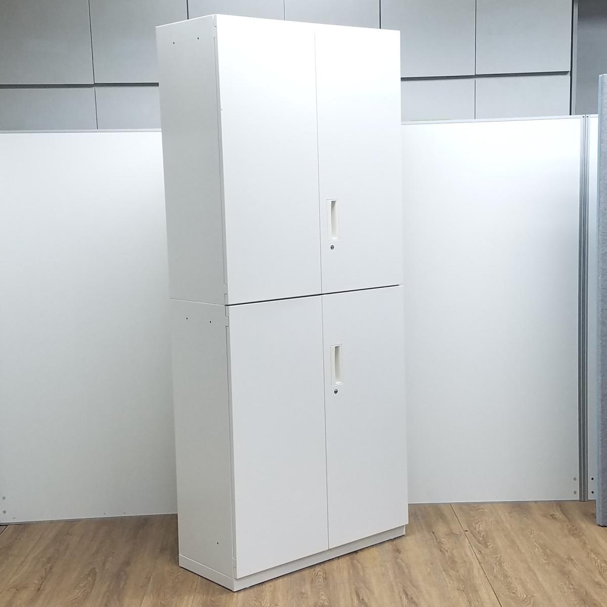 【T10】【商品入替のため、残り1台限り】ダイシン工業製 DSK ホワイト シリンダー 注意※奥行400サイズ 観音開きですべての書類を見渡せ、必要な書類がラクに取り出せる! 人気の書庫セット! ハイキャビネット 上下両開き 上下書庫セット!!- 京都東寺店