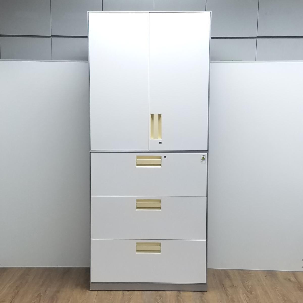 【K10】【商品入替のため、残り2台限り】コクヨ製 ユニフレックス(UFX) 正面:ホワイトx側面:シルバー シリンダー錠 ※ラッチ日焼け有 すっきりとしたデザインの書庫セット! これ1台でオフィス書類をスッキリ整理! ハイキャビネット 両開き+3段ラテラル 上下書庫セット!!- 京都東寺店