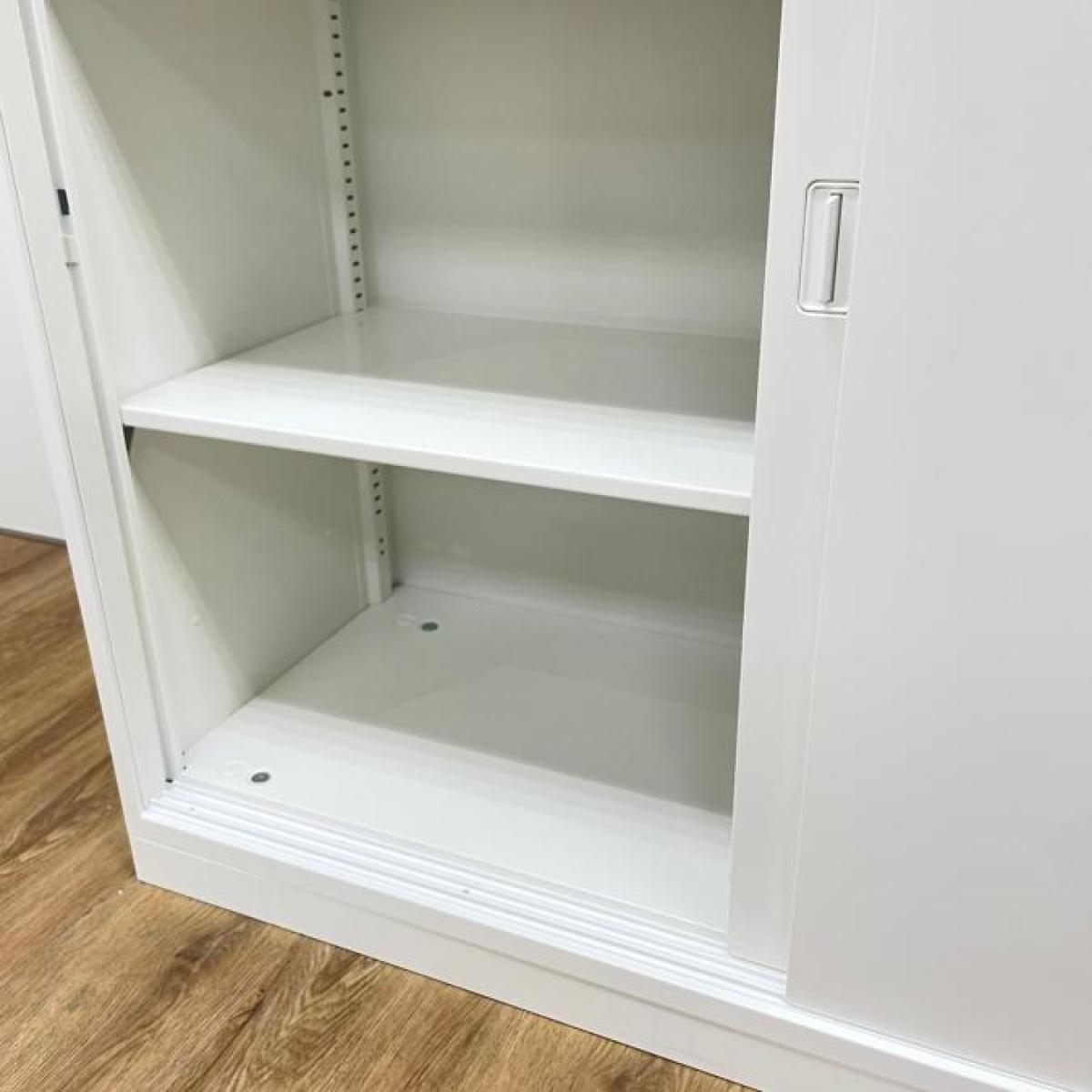 スライド式の扉のため導線を邪魔しません!使い勝手抜群の2枚引き違い書庫が入荷! ■オカムラ/レクトライン/ホワイト 2枚引き戸