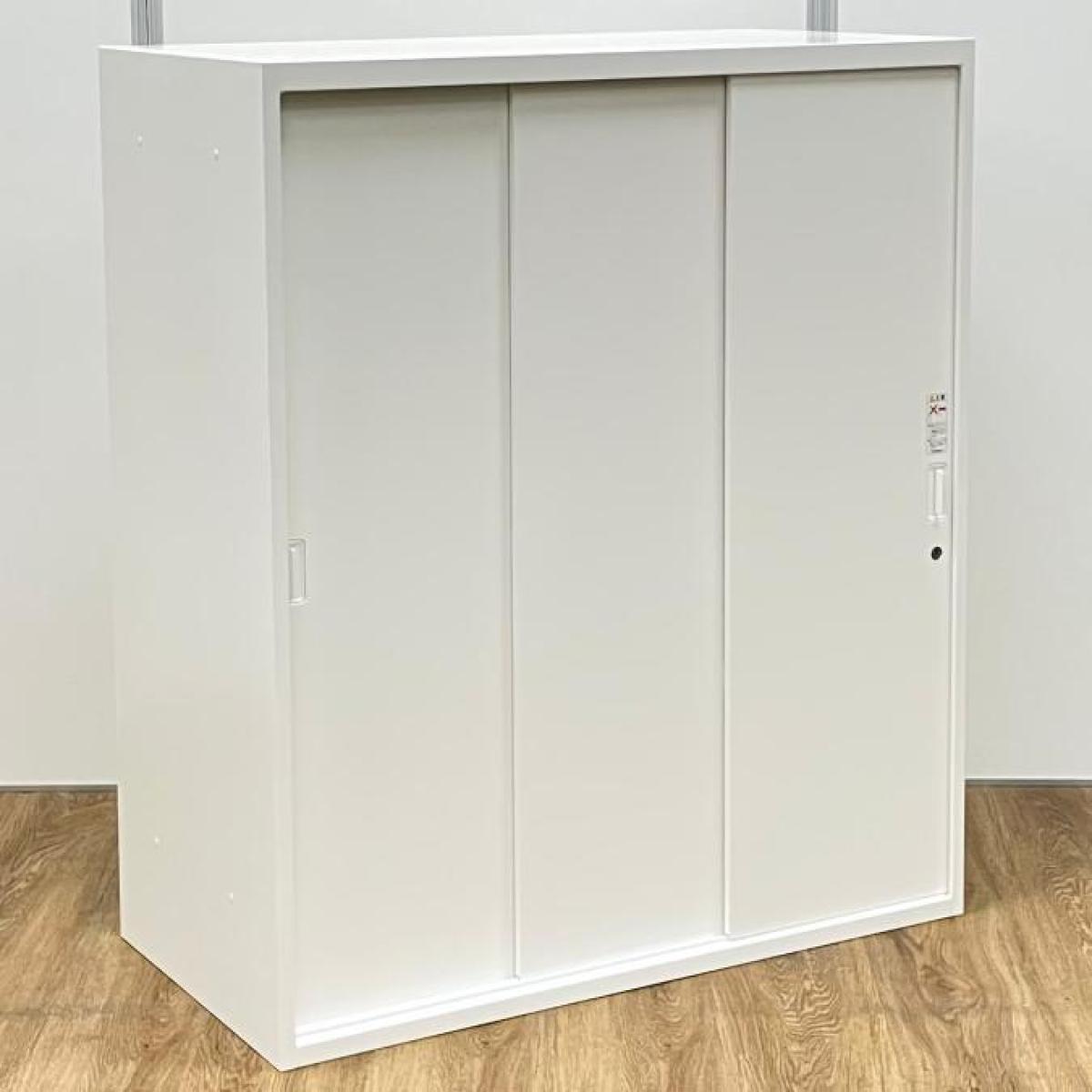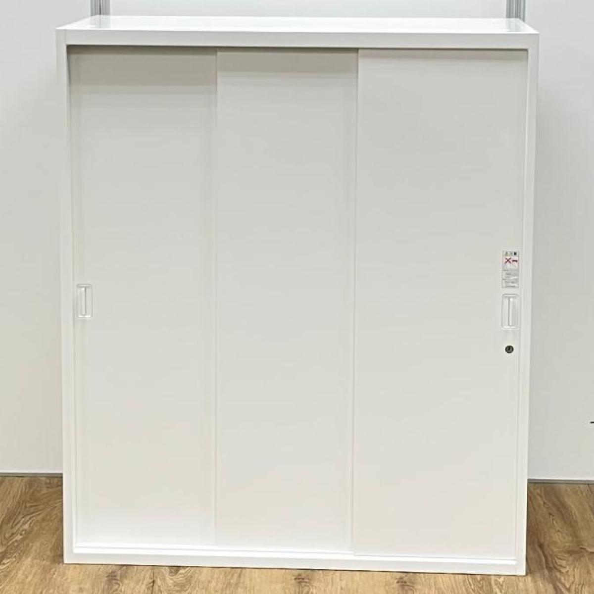 【スライド引き戸だから開閉スペースに困りません!】【人気のホワイト書庫!】■オカムラ(okamura)製 レクトラインシリーズ 3枚戸タイプ 引き違い書庫 ■色:ホワイト ■シリンダー鍵
