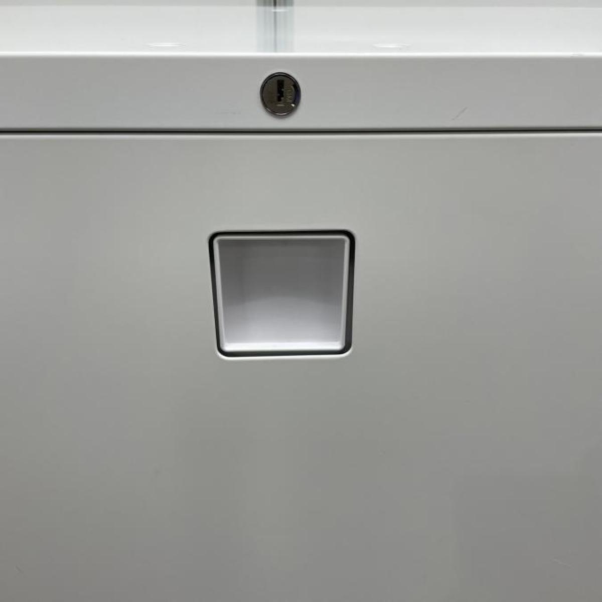 オカムラ レクトライン 3段ラテラル書庫 ホワイト天板 シリンダー錠 鍵付き ※取っ手部分に若干日焼けあり