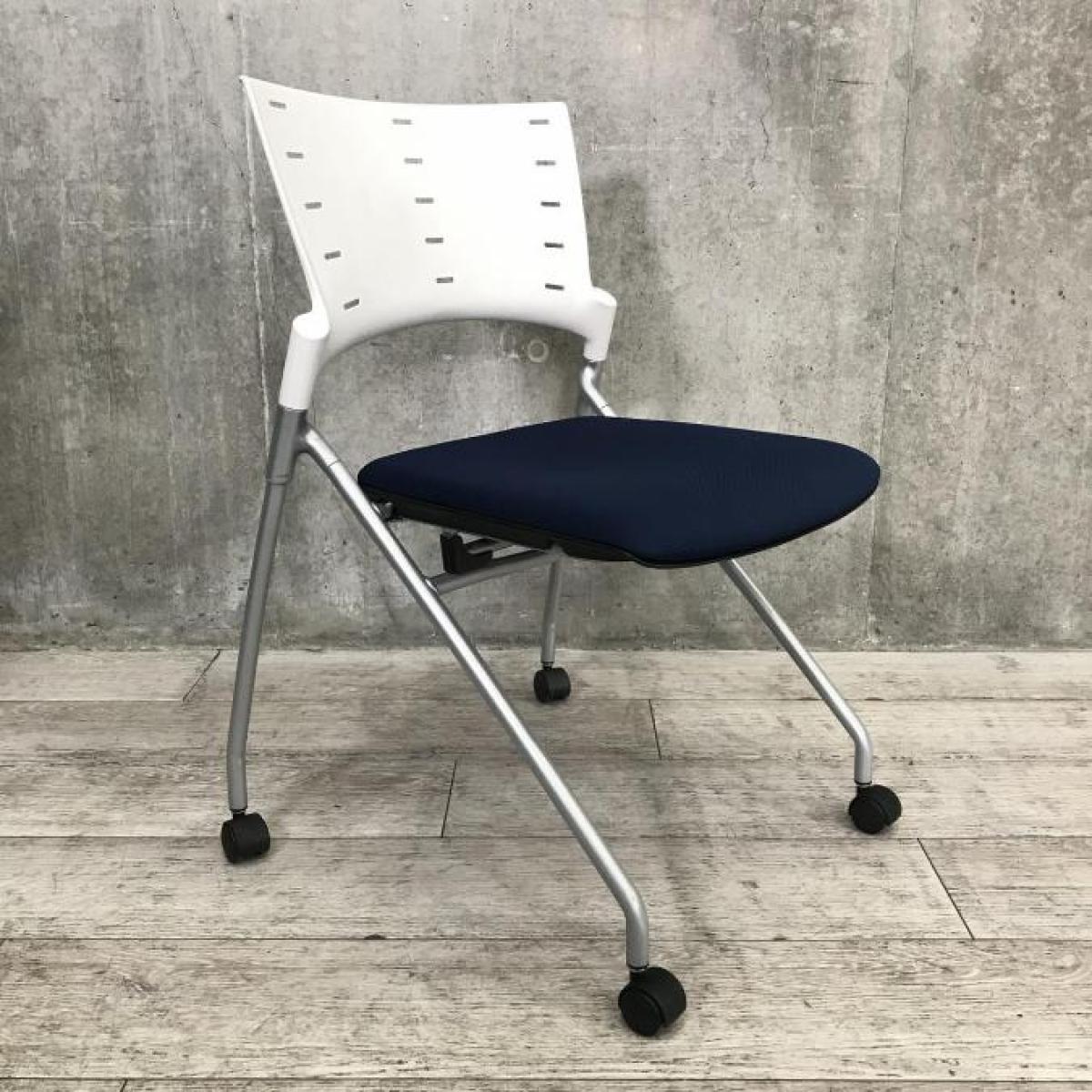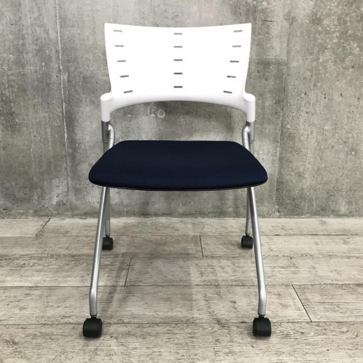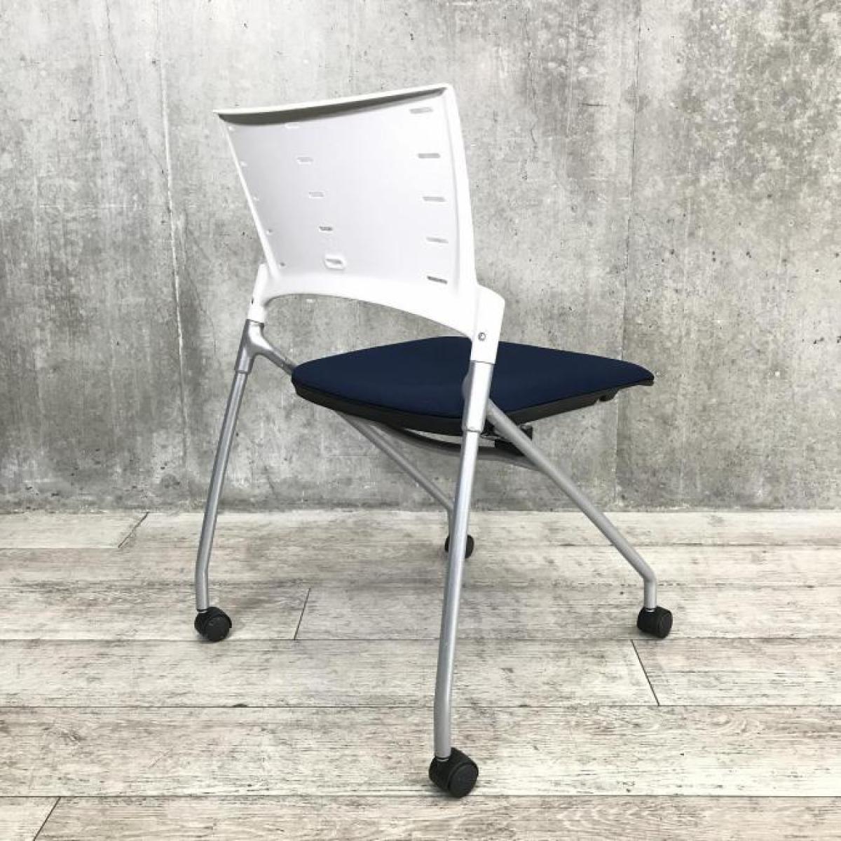 【キャスター付でスイスイ動かせる!】■イトーキ製 マノスシリーズ ネスティングチェア ネイビーブルー 背シェル:オフホワイト【ITOKI MANOSS】