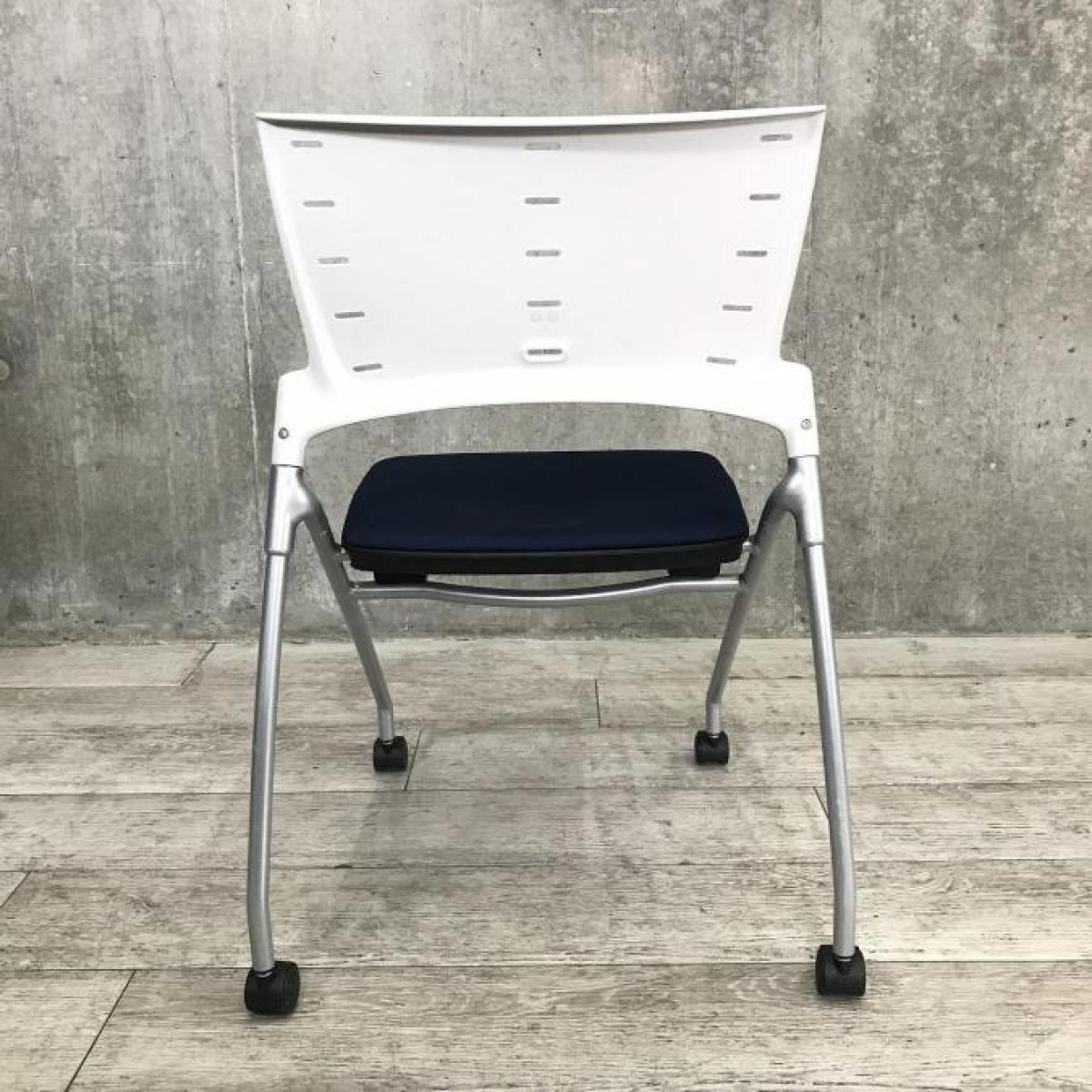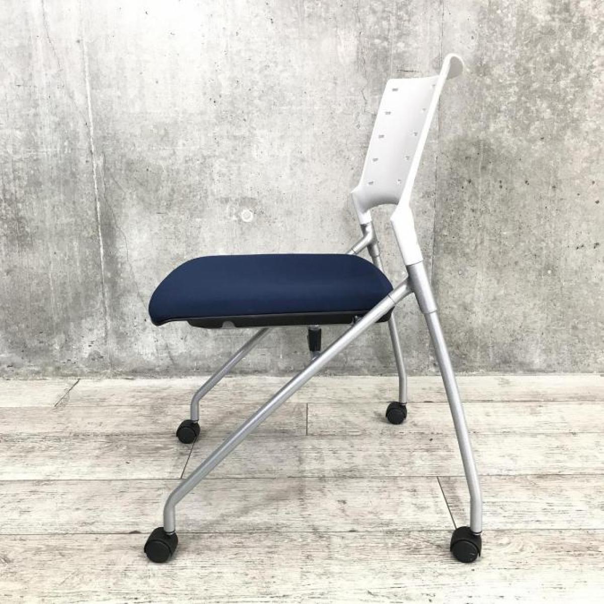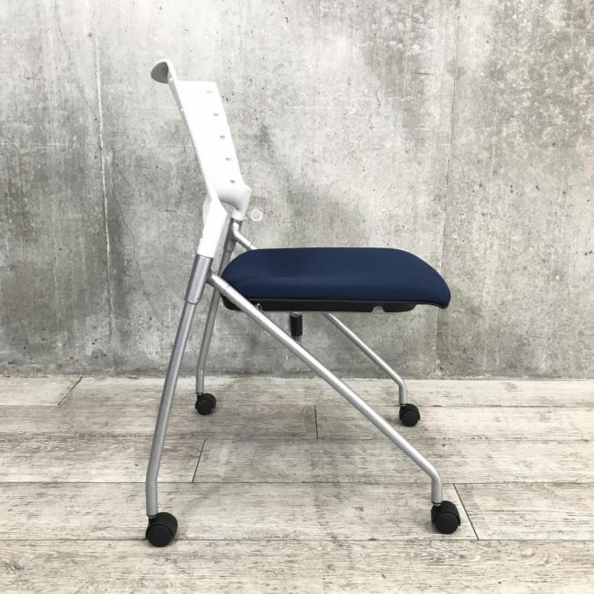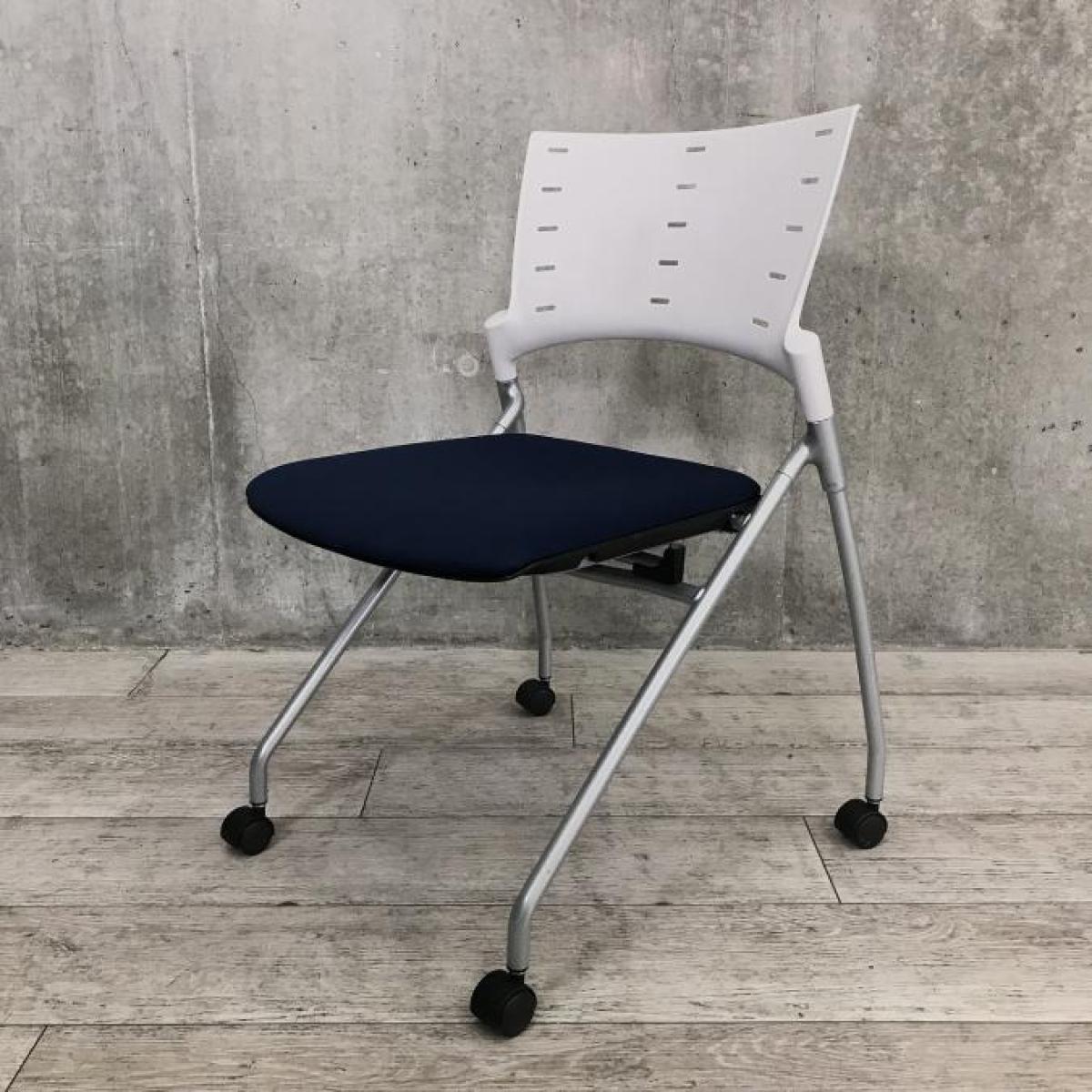 【キャスター付でスイスイ動かせる!】■イトーキ製 マノスシリーズ ネスティングチェア ネイビーブルー 背シェル:オフホワイト【ITOKI MANOSS】