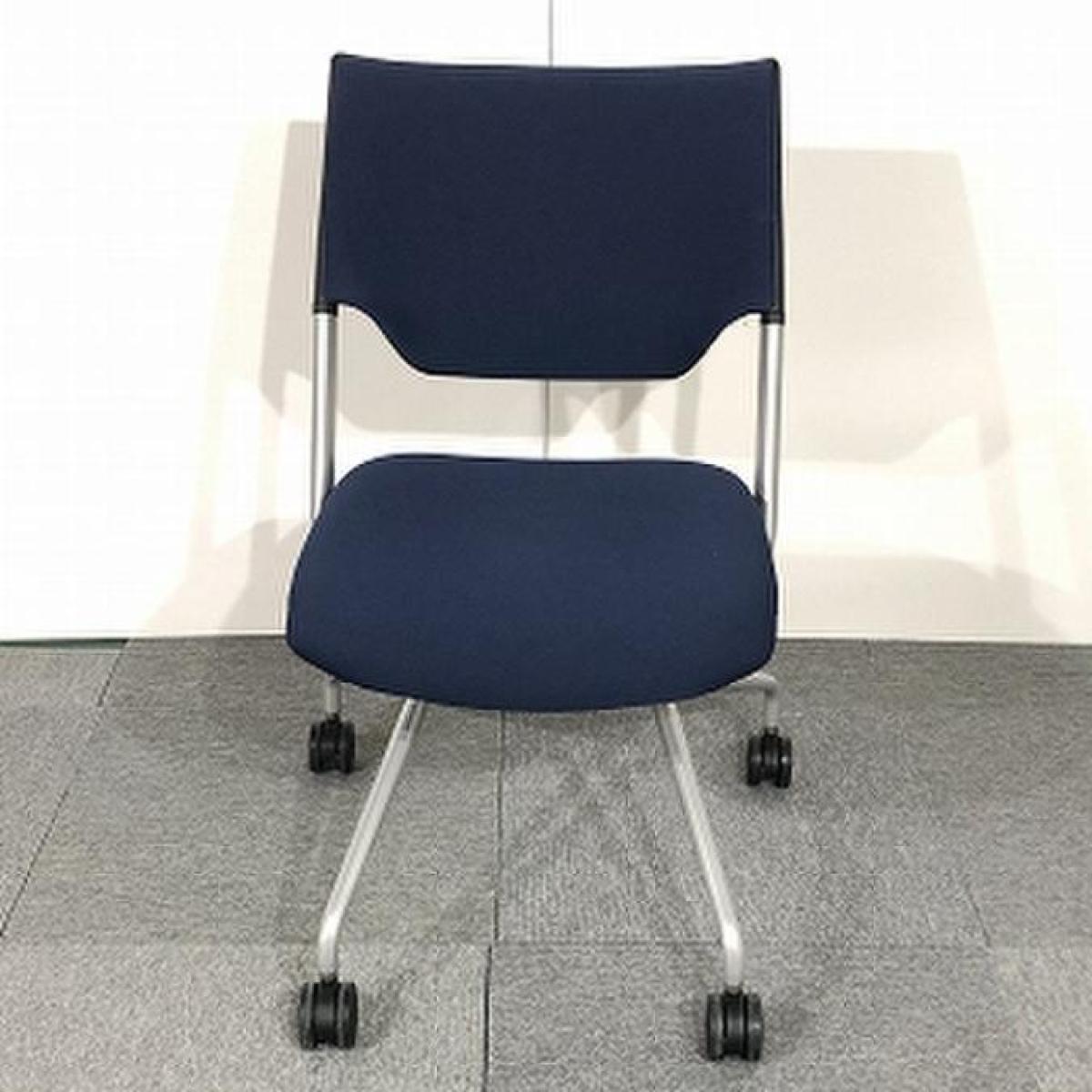 【グッドデザイン賞を受賞しているオシャレなデザイン!水平スタックで省スペース収納!】■イトーキ(ITOKI)製 レクシブシリーズ ネスティングチェア キャスター付 ■ネイビーブルー- なんば日本橋店